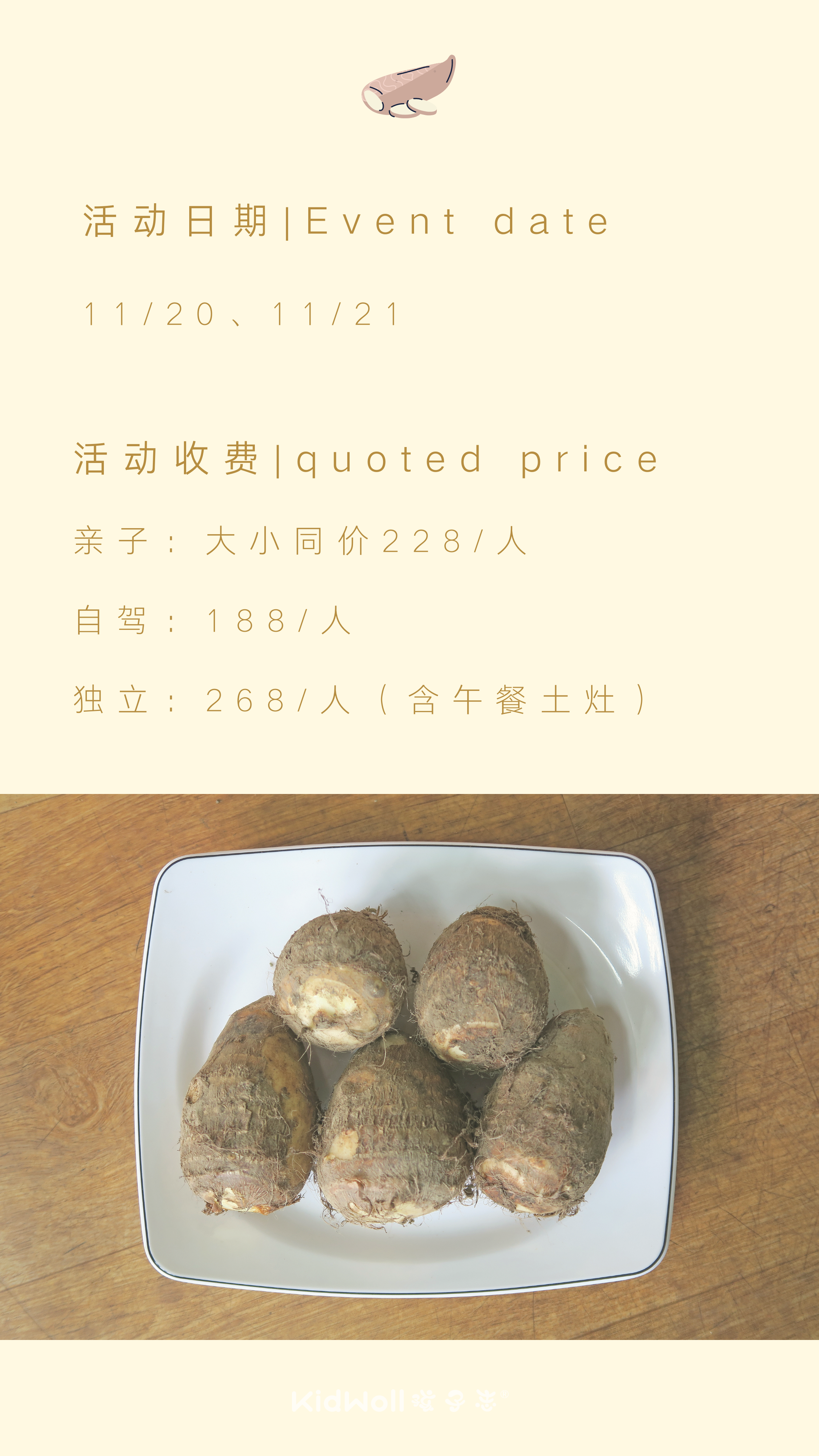 孩子志独立/亲子营 大巴/自驾 |“芋”众不同 11/20 11/21 不出苏州 秋高气爽,正是外出好时节,这个秋天让小朋友们和我们一起体会秋收的快乐,一起去挖芋头吧!