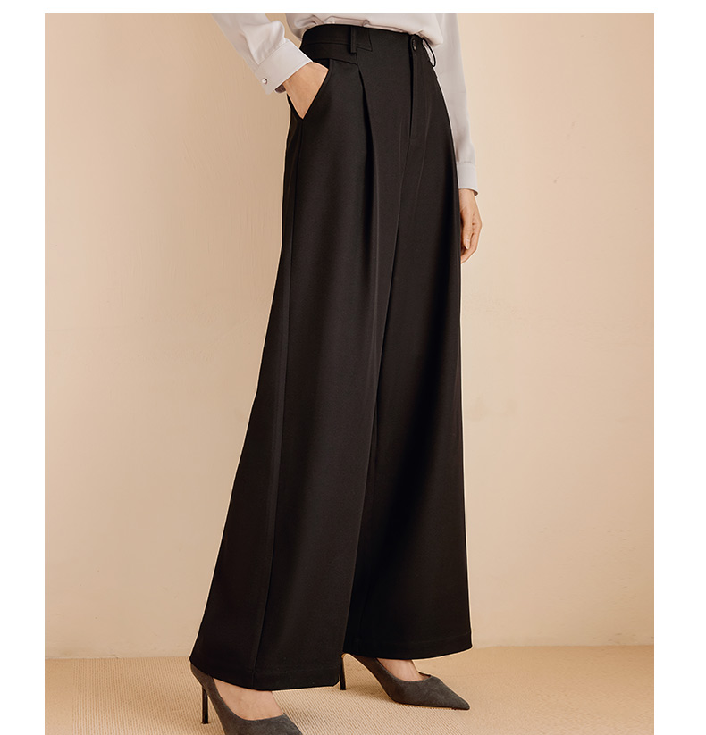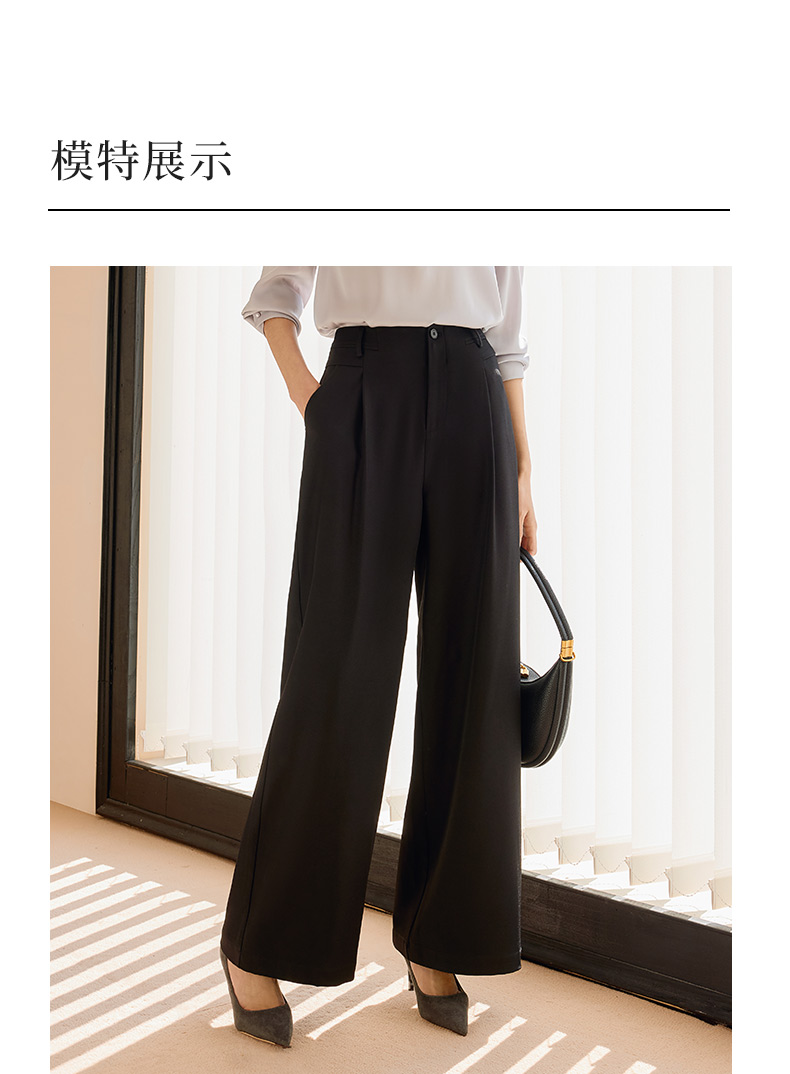 玳莎简约阔腿裤女2025春季新款垂感高腰通勤西装裤宽松直筒休闲裤 FA36307
