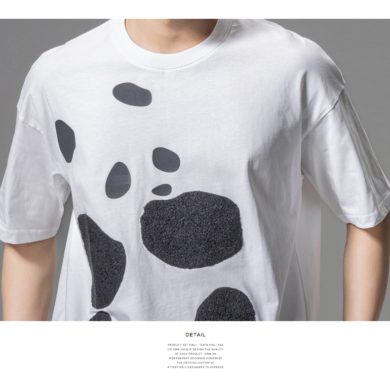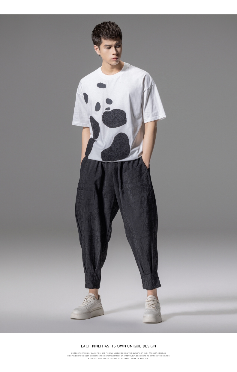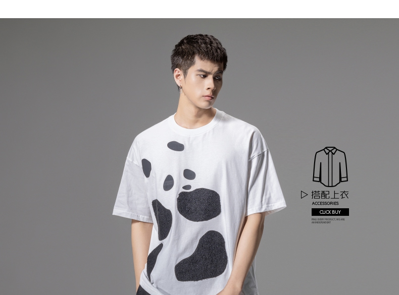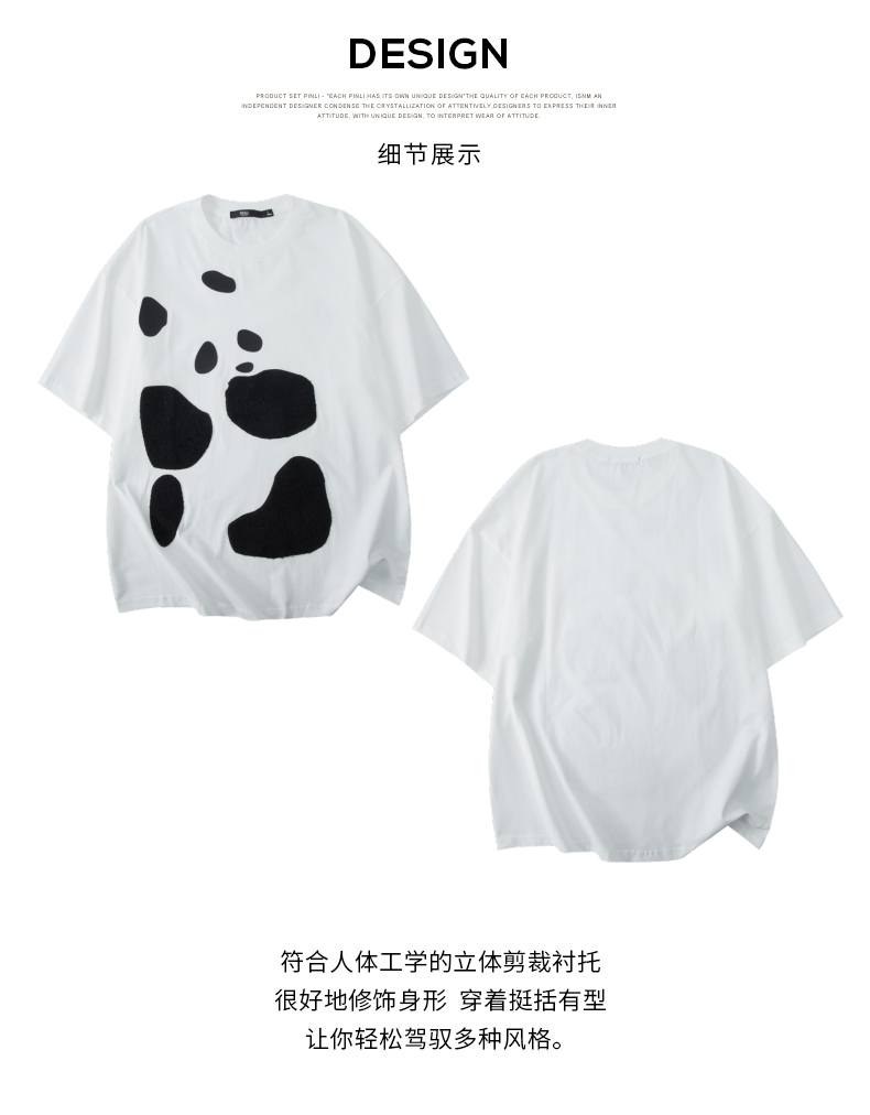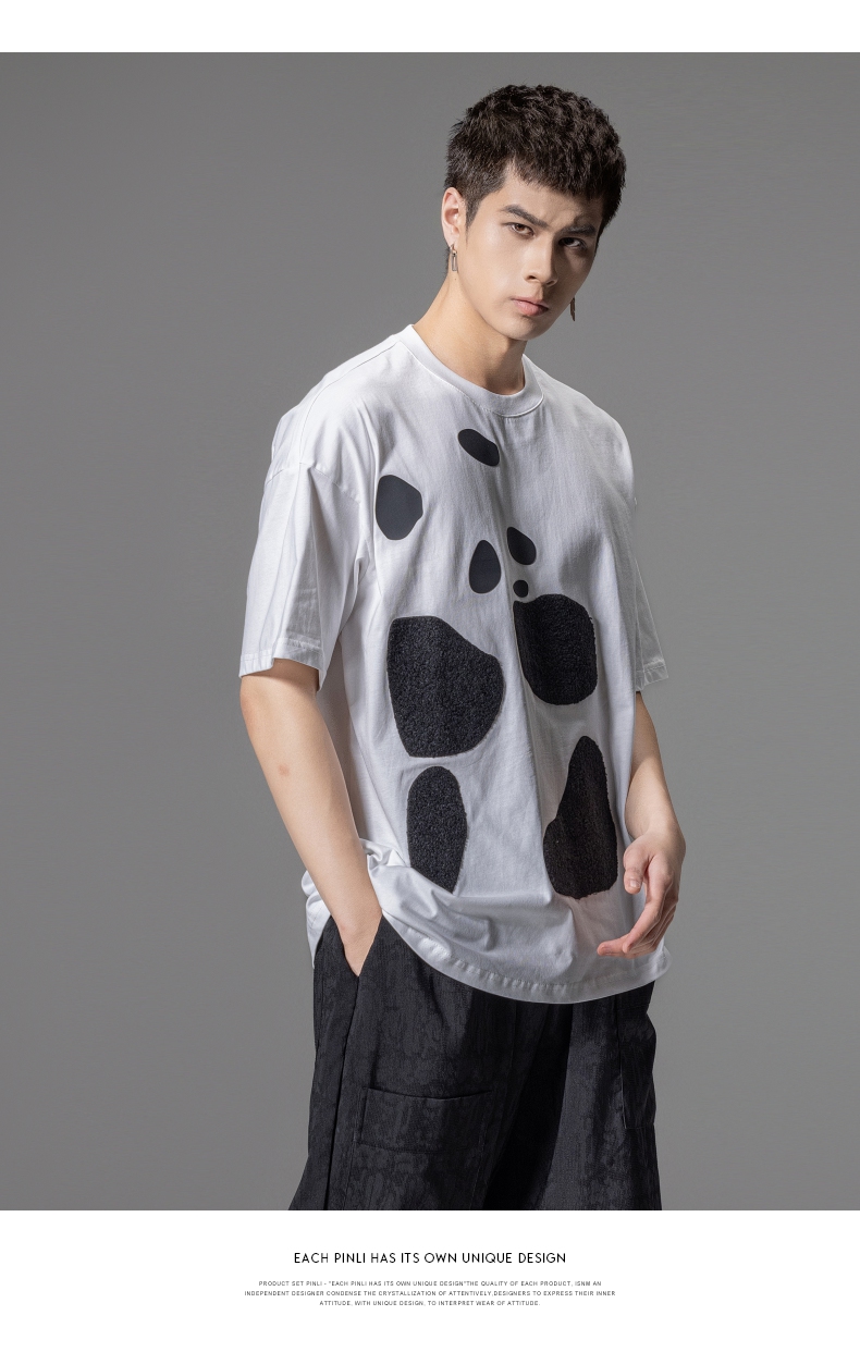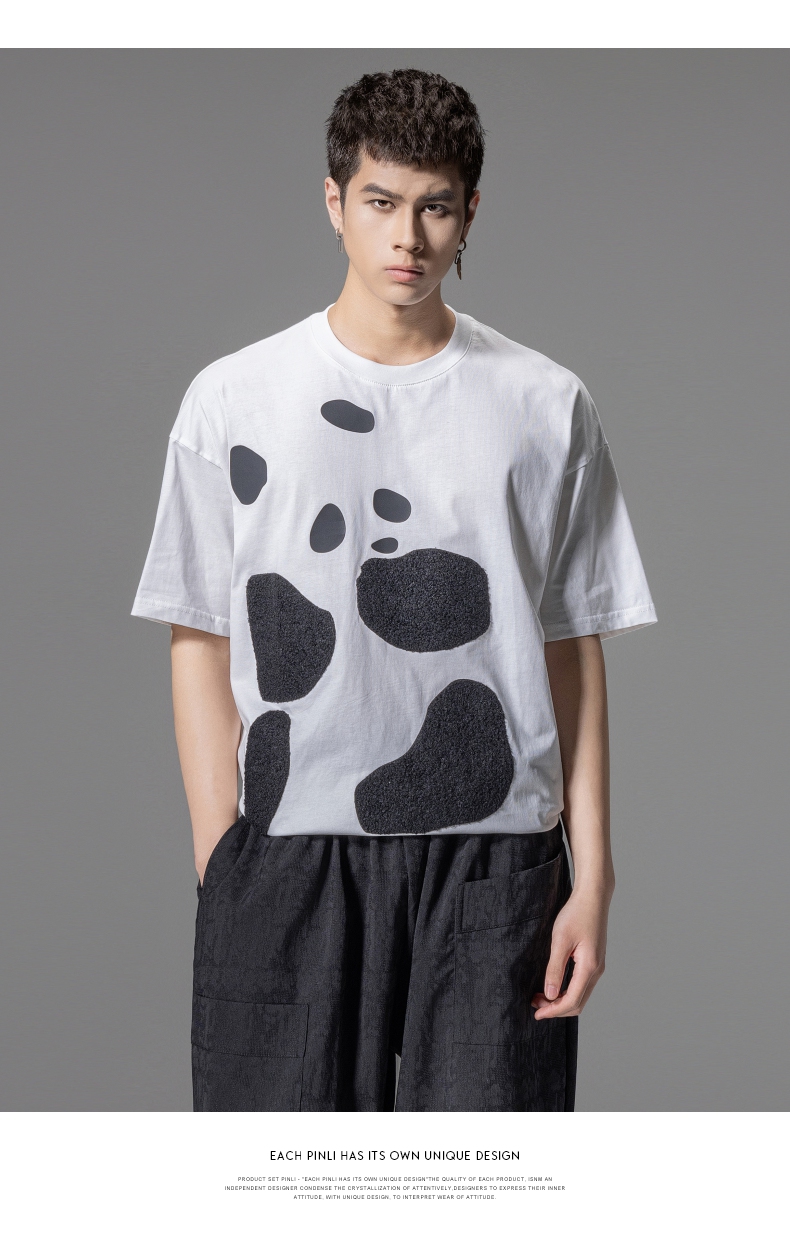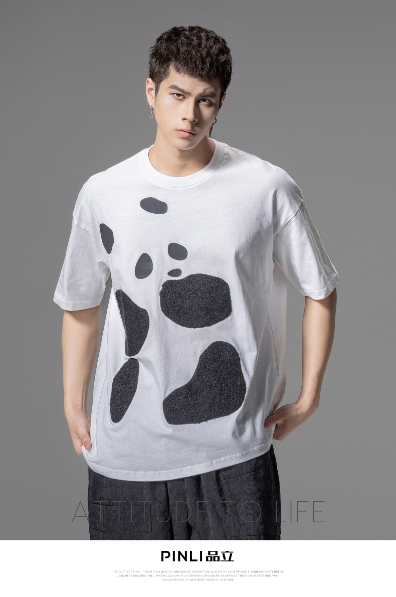PINLI品立夏季新款熊猫宽松短袖T恤潮牌百搭休闲体恤男士上衣B242111103