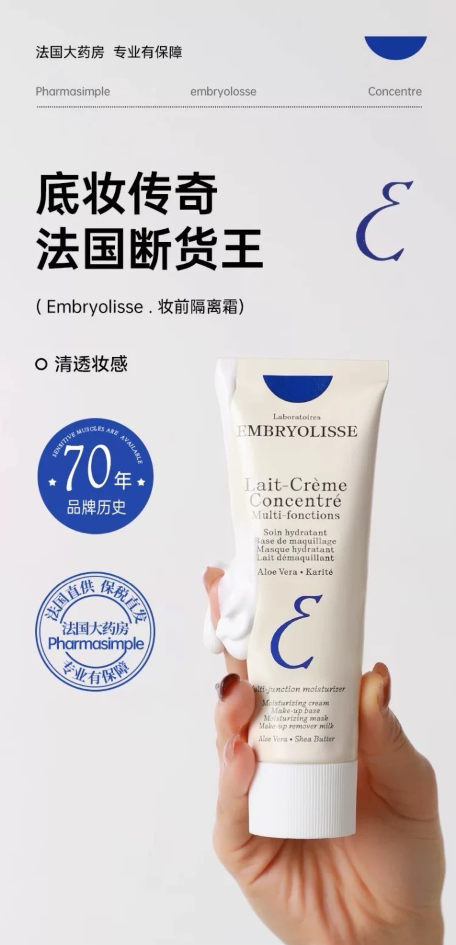 [屁侠推荐]法国大宝 妆前隔离乳霜 Embryolisse打底修颜控油隐形毛孔保湿面霜 保税仓发货