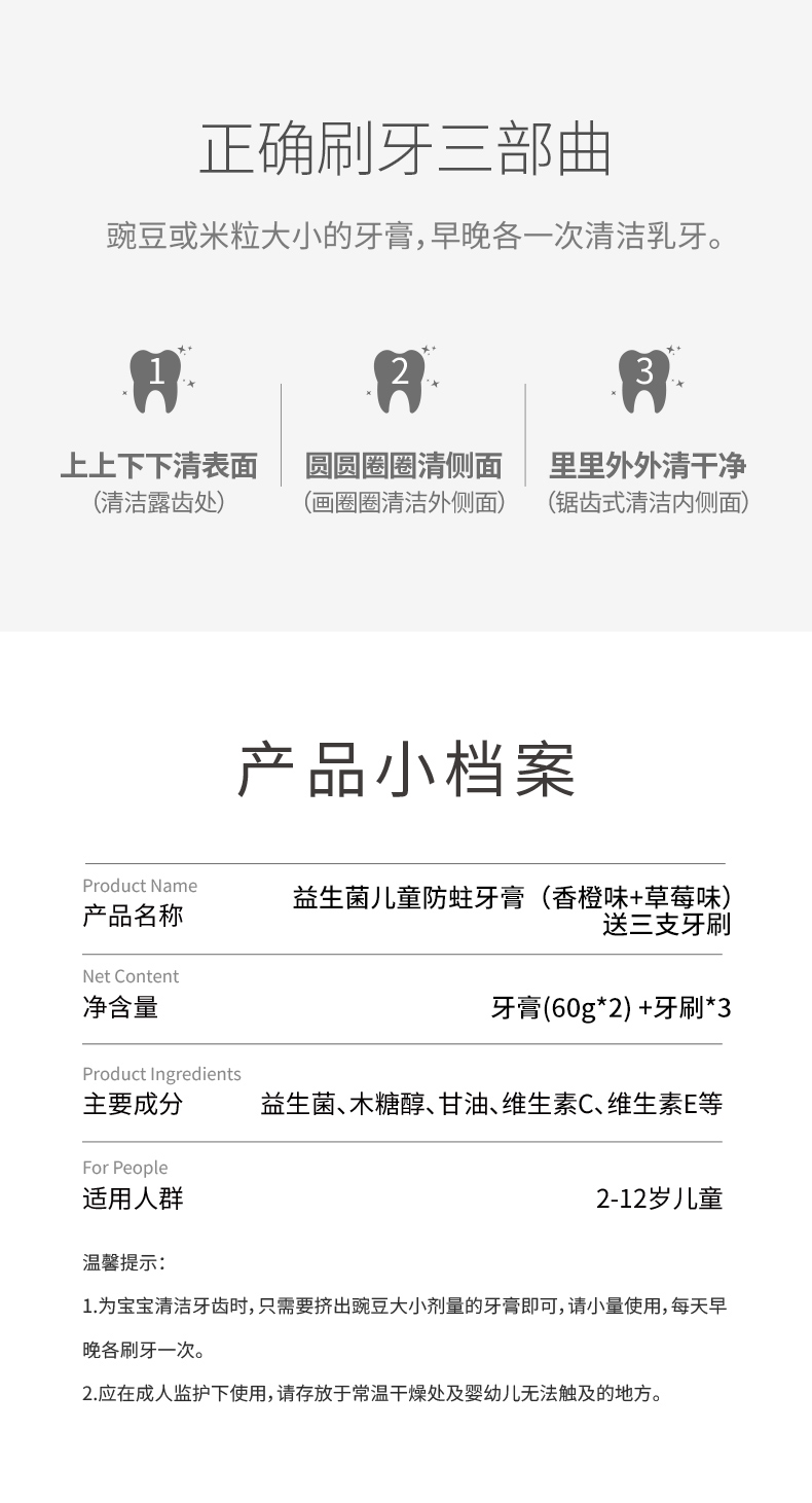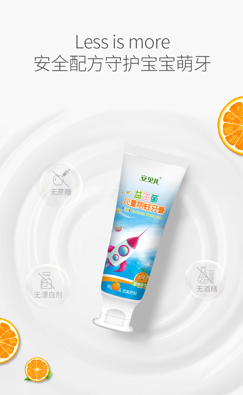 安贝儿 益生菌儿童防蛀牙膏(香橙味+草莓味)60g*2