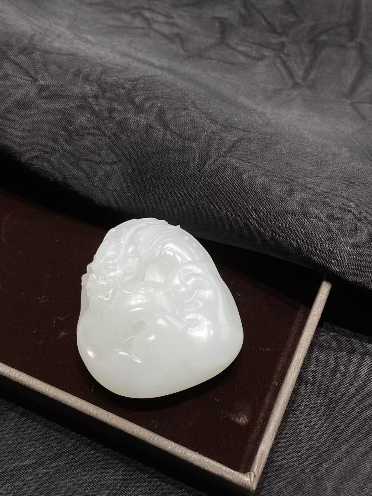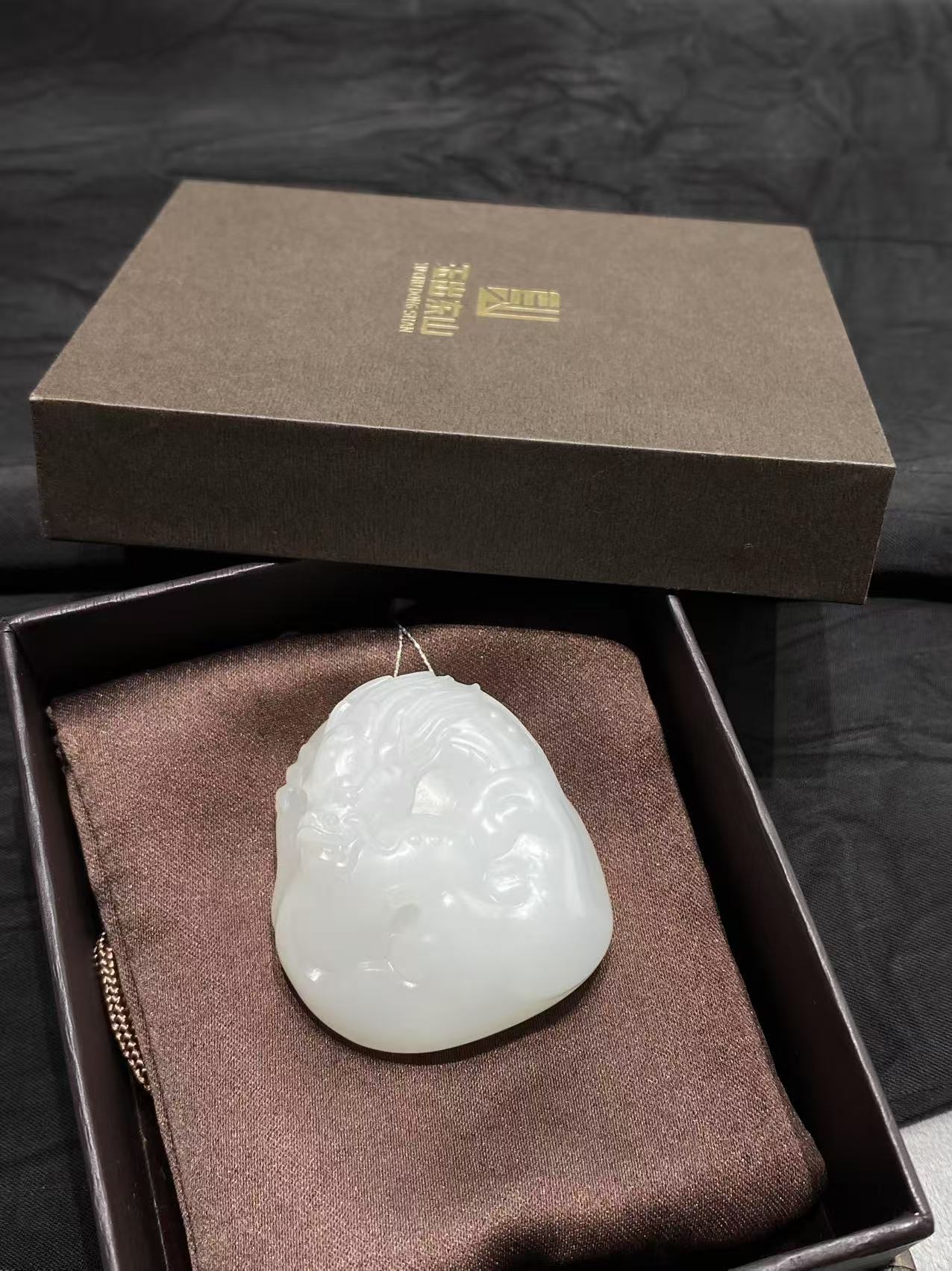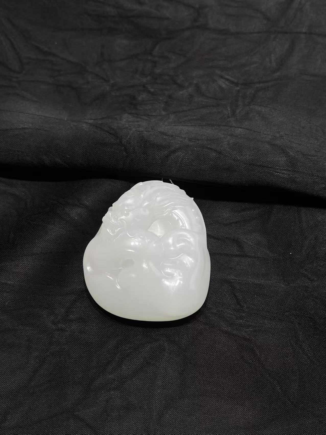 【于田产和田玉95料羊脂白龙行天下吊坠】编号HA30112S,43*40,55克,出证书,发货1~五天,48小时鉴赏期