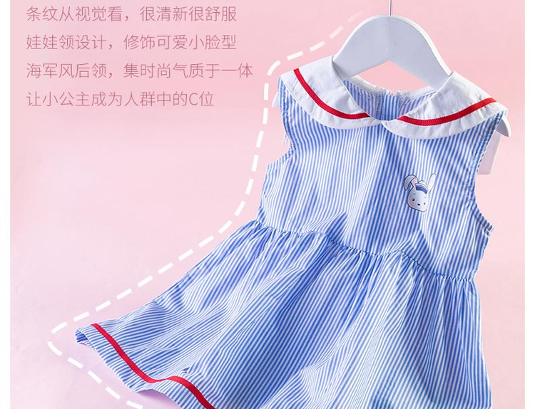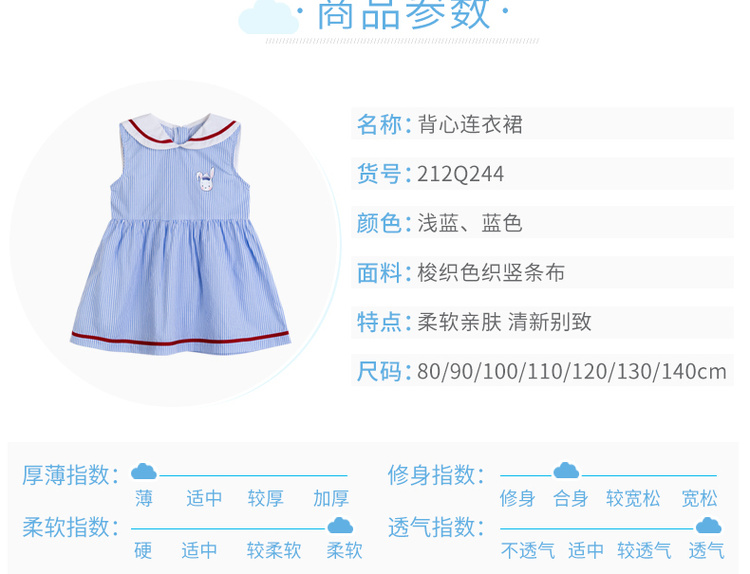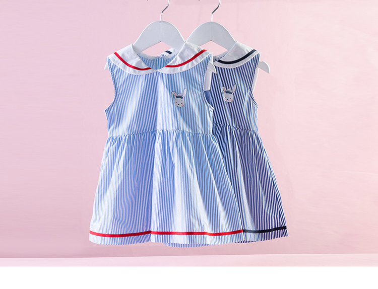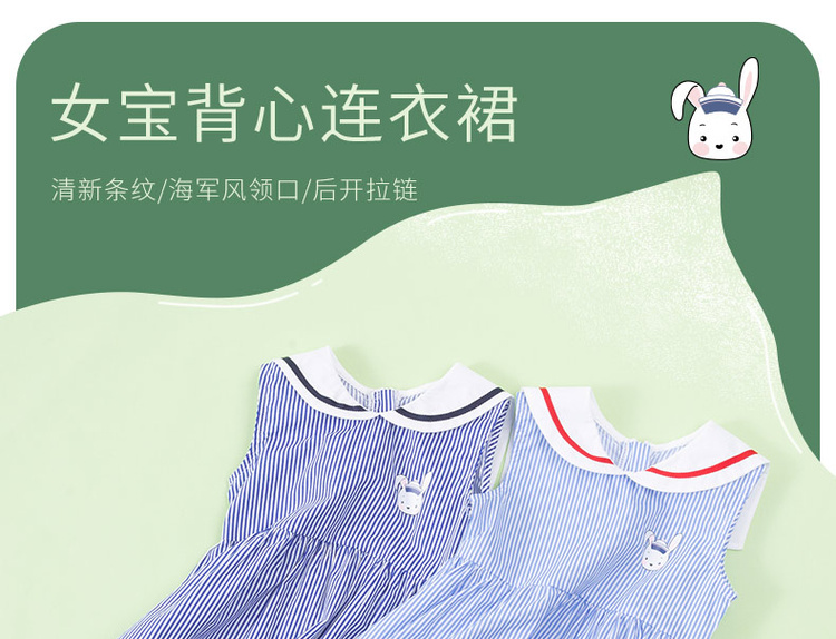 贝贝怡女宝宝A字摆条纹海军风公主连衣裙子长裙212Q244