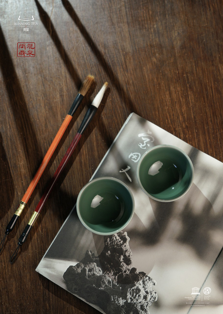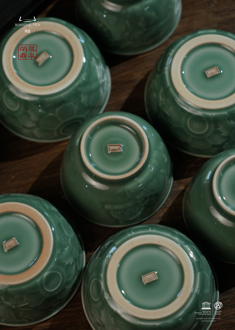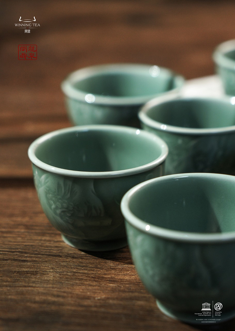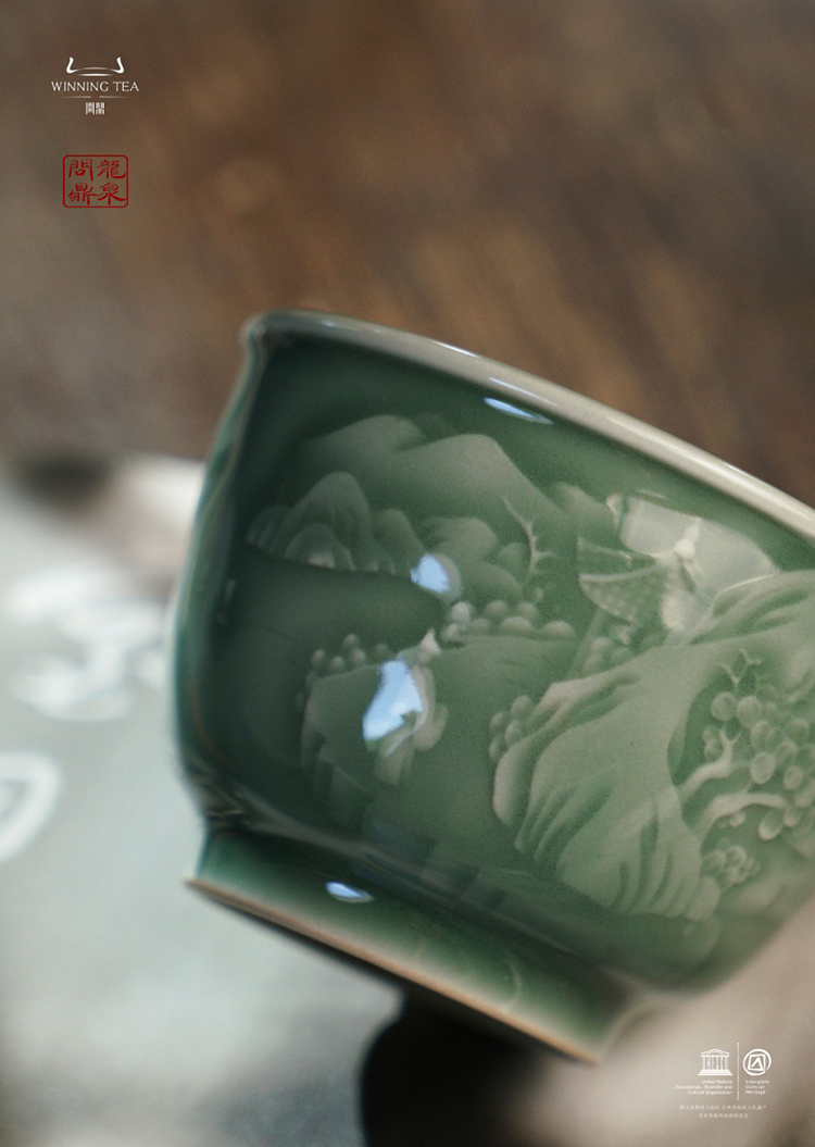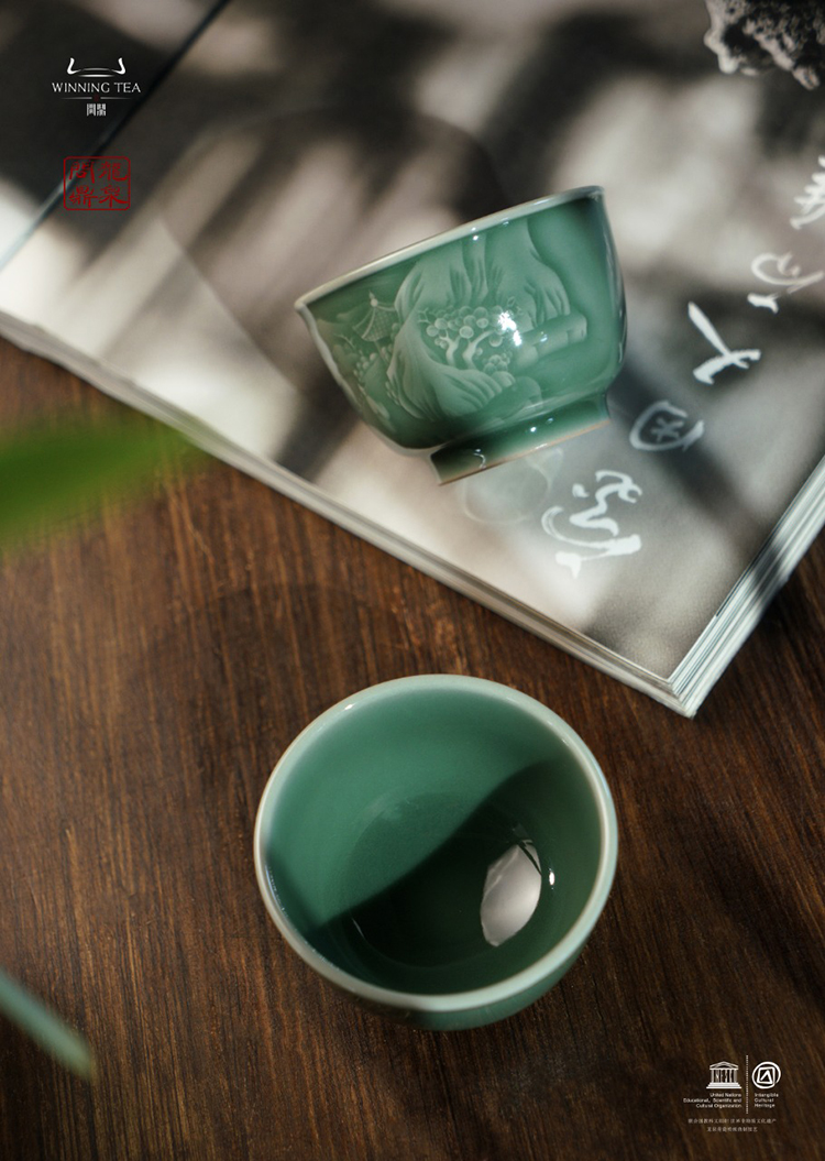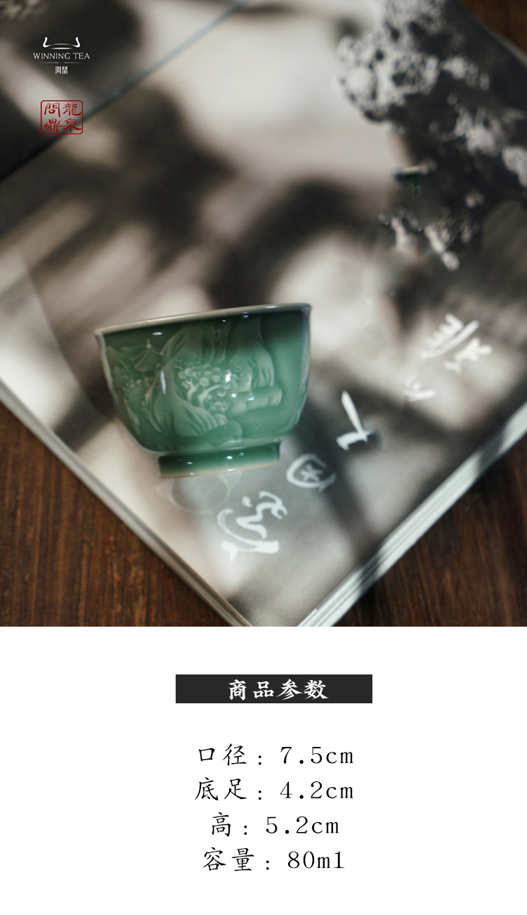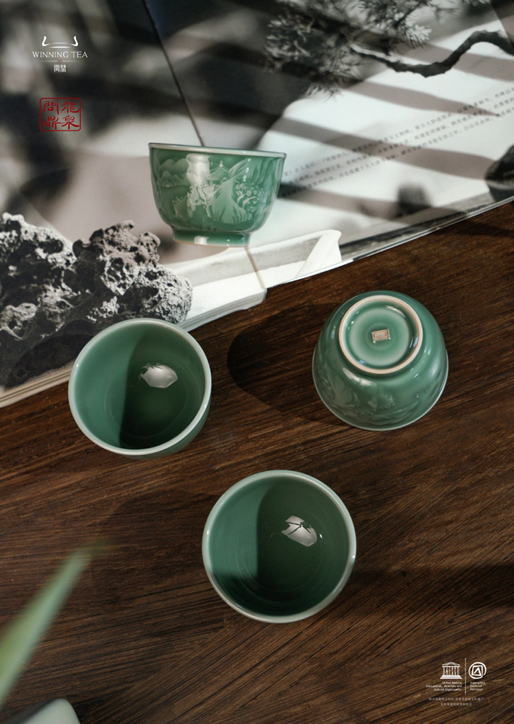 龙泉问鼎梅子青刻绘安己杯(醉翁亭)(缺货)