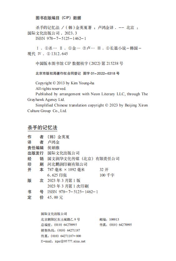 杀手的记忆法 作者[韩]金英夏 磨铁图书