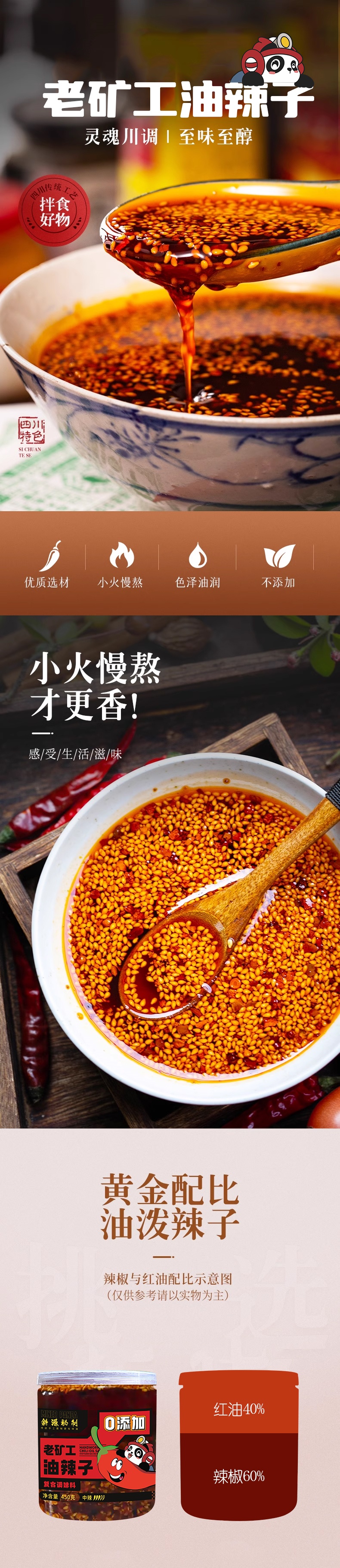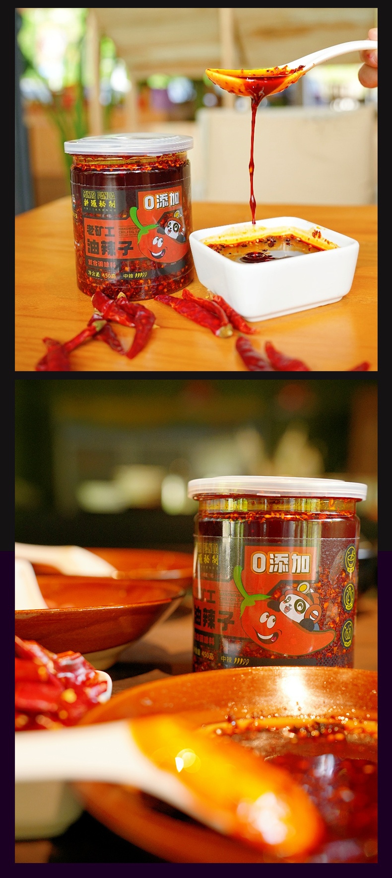 斜源特产老矿工油辣子450g中辣辣椒酱调味酱拌面
