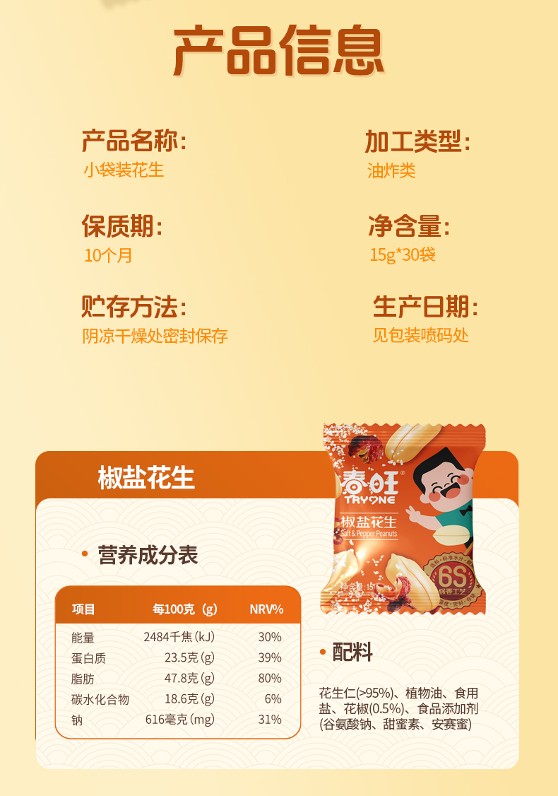 春旺山东大花生 干果零食坚果炒货 飞机花生航空配餐15g/20g袋