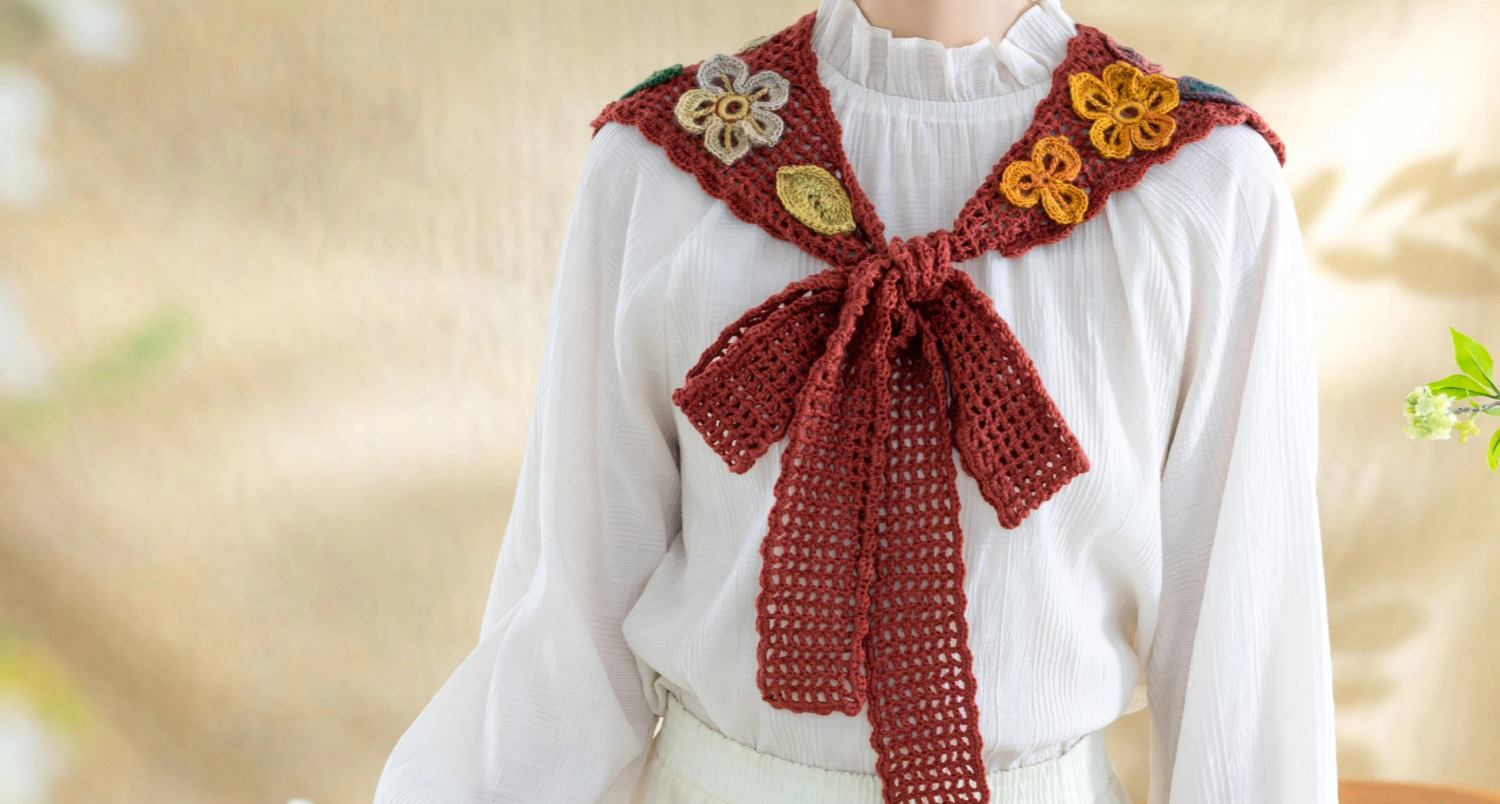 苏苏姐家花影系带披肩手工diy钩针羊毛线编织毛线团材料包
