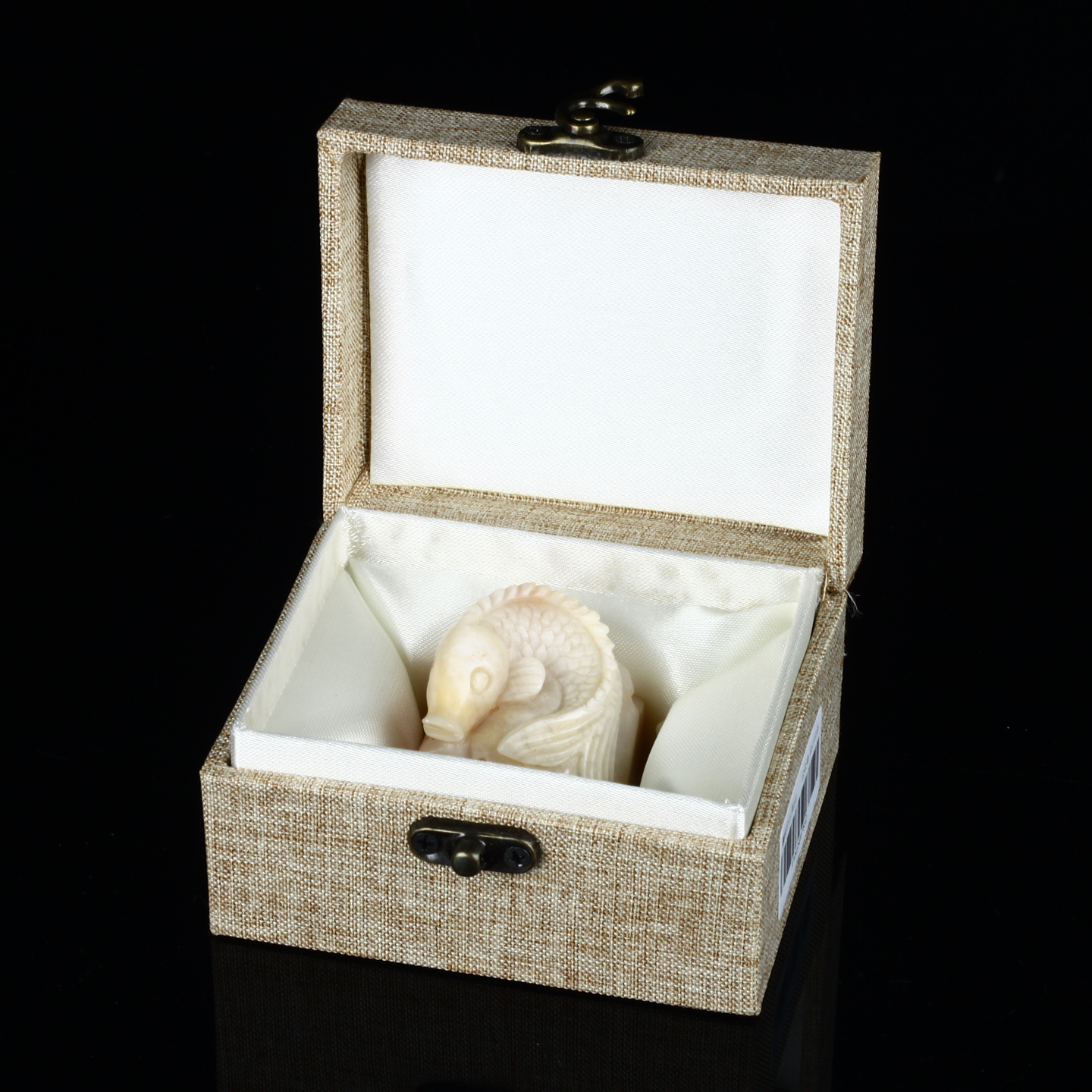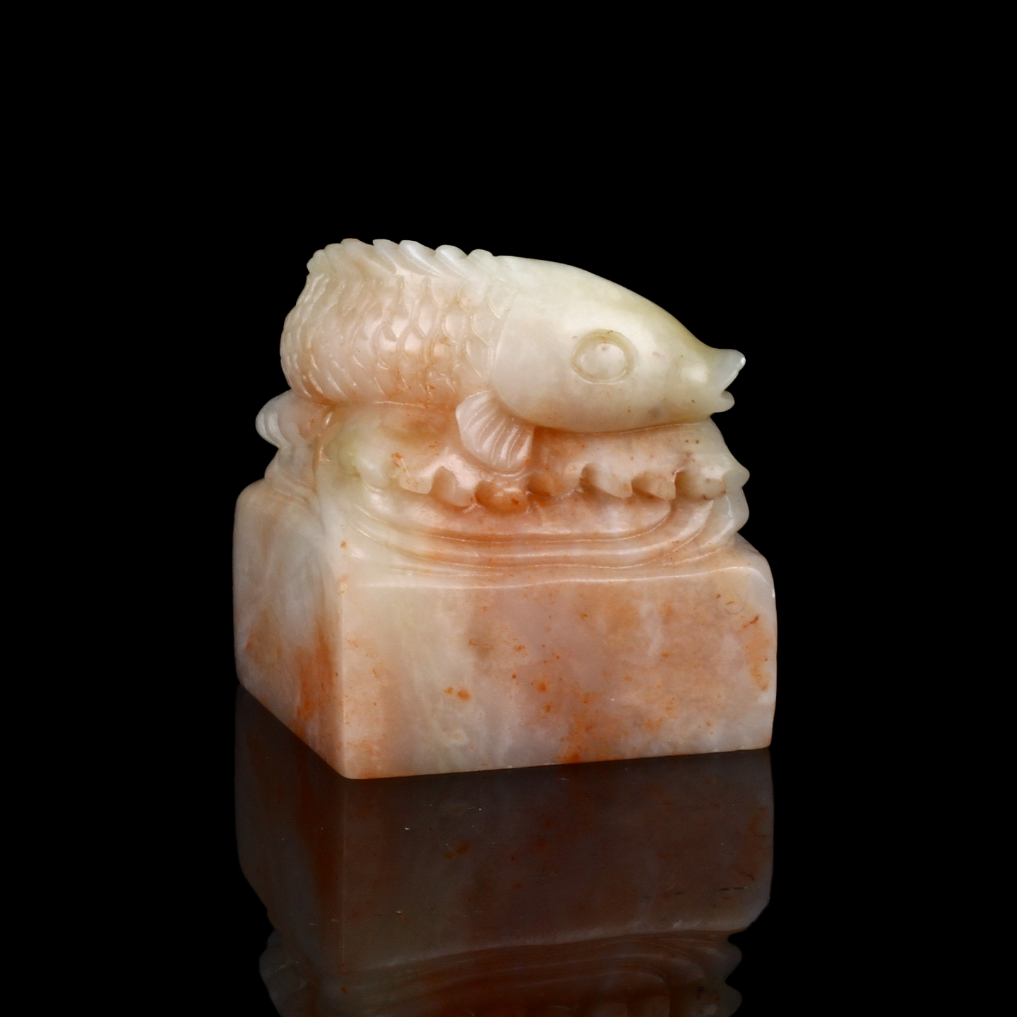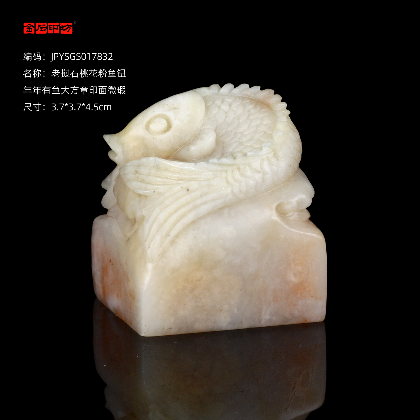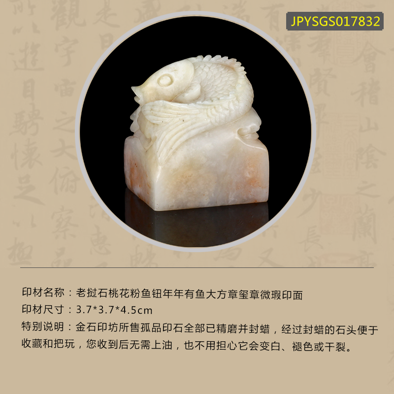 孤品17832老挝石桃花粉鱼钮年年有鱼大方章玺章3.7*3.7*4.5cm
