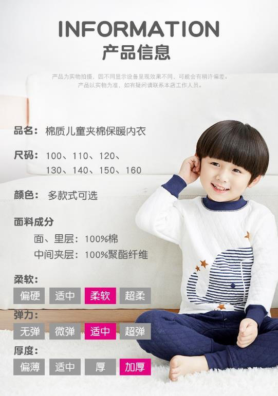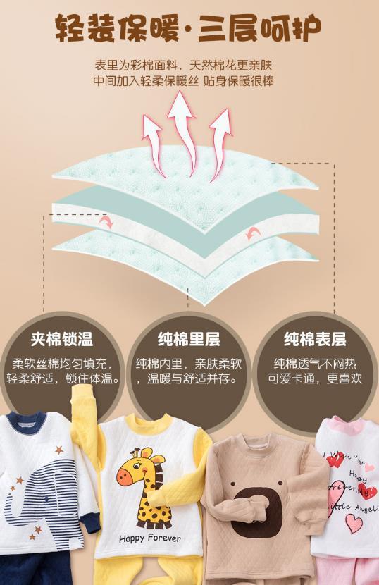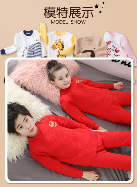 【儿童内衣】*儿童保暖内衣套装纯棉男童女童加厚秋衣秋裤三层夹棉秋冬季