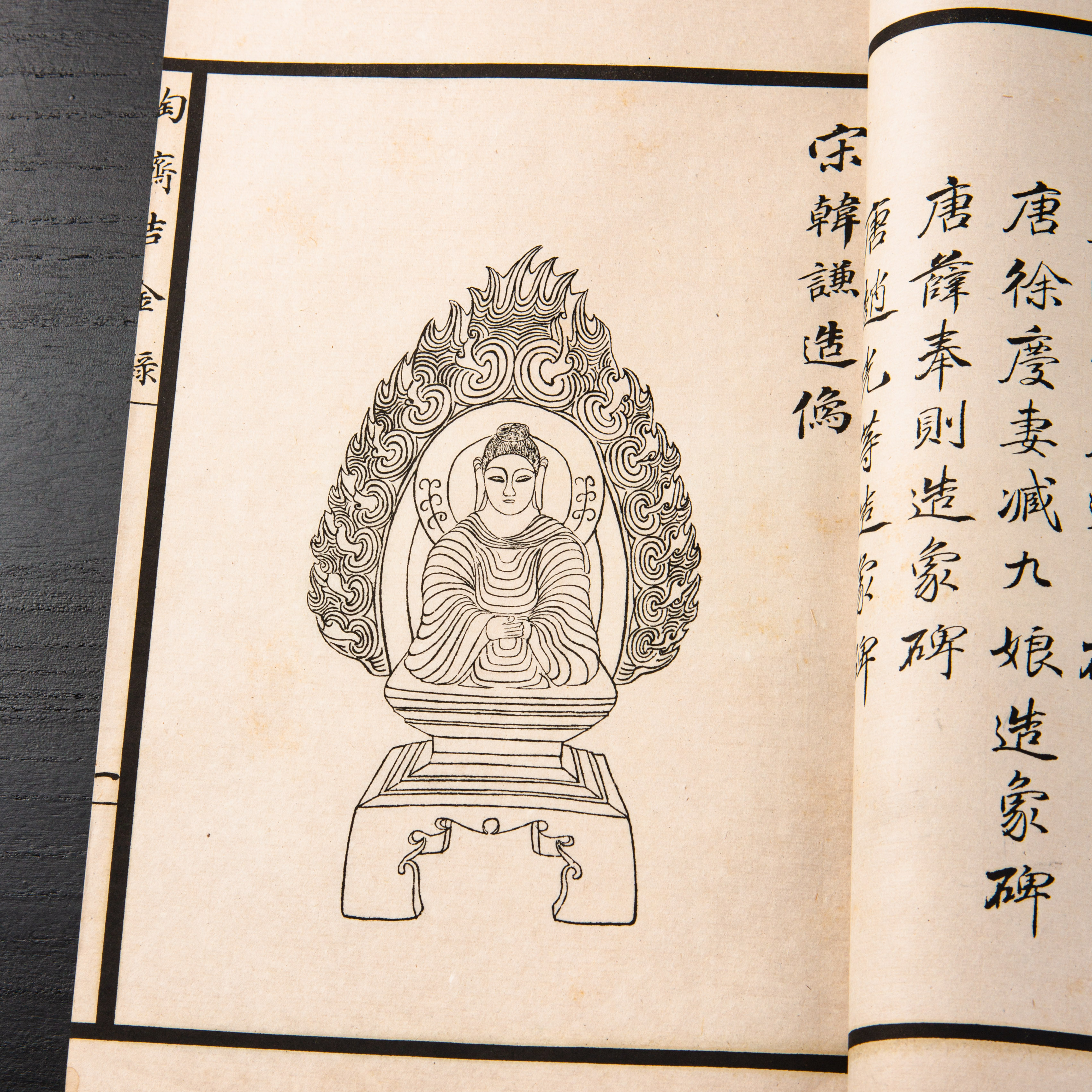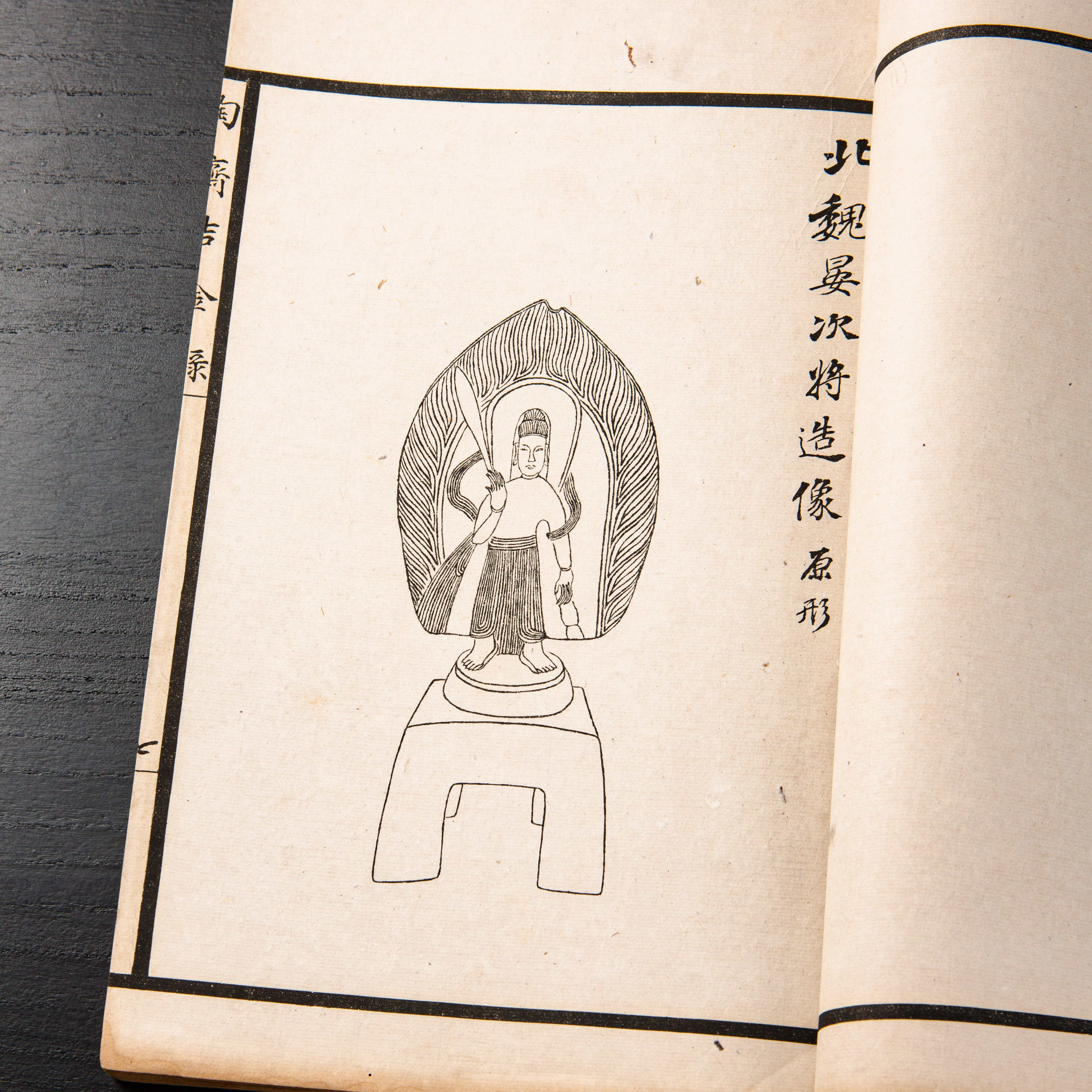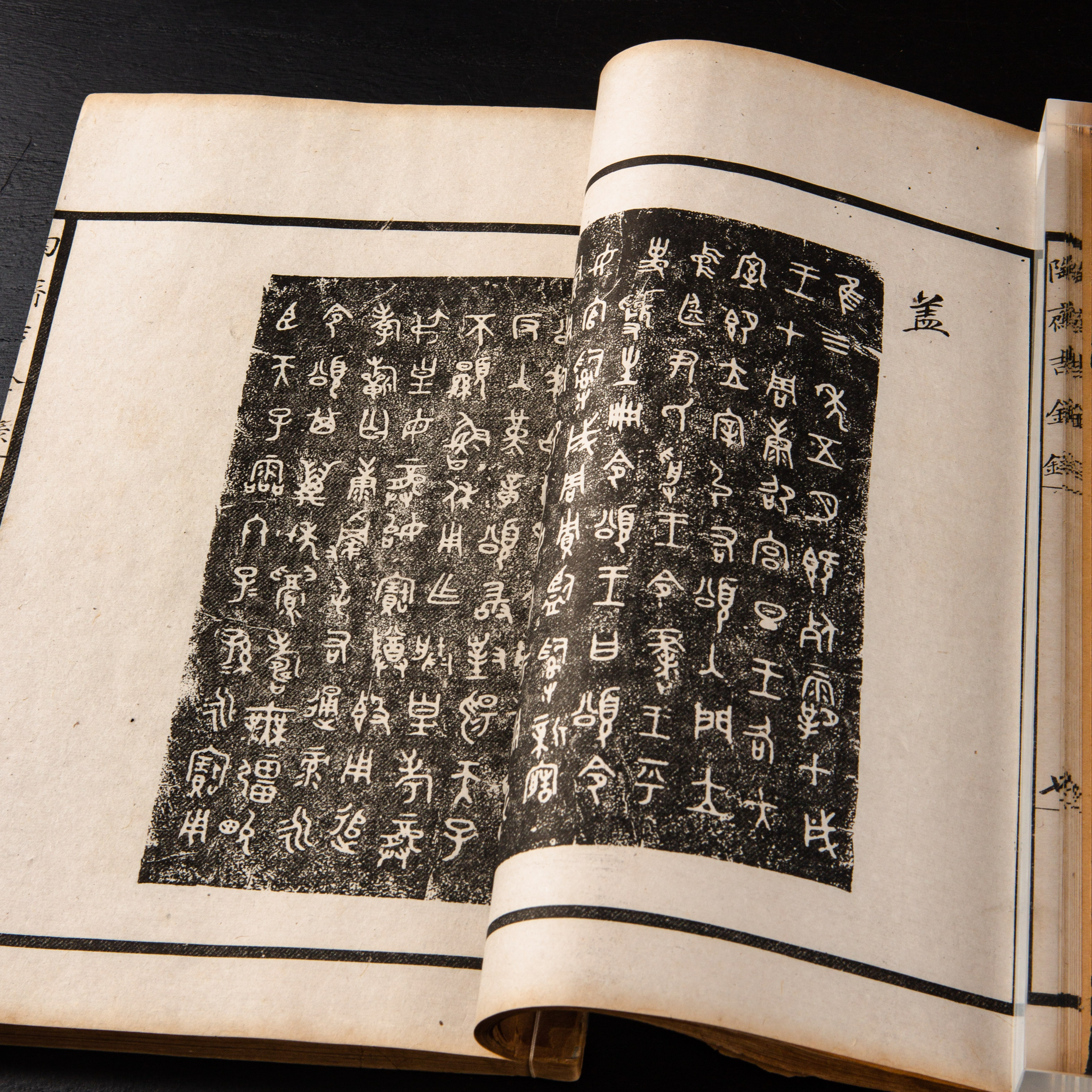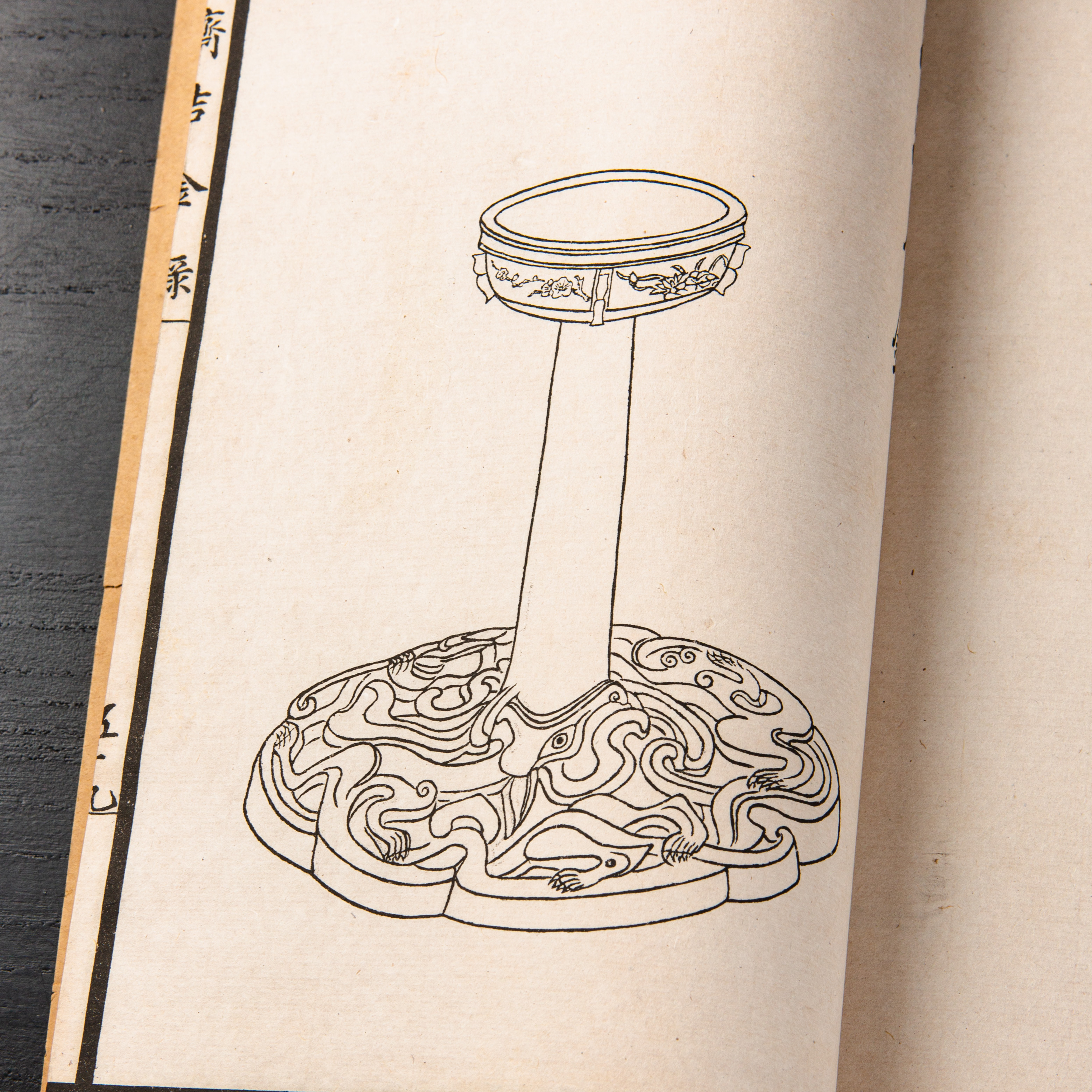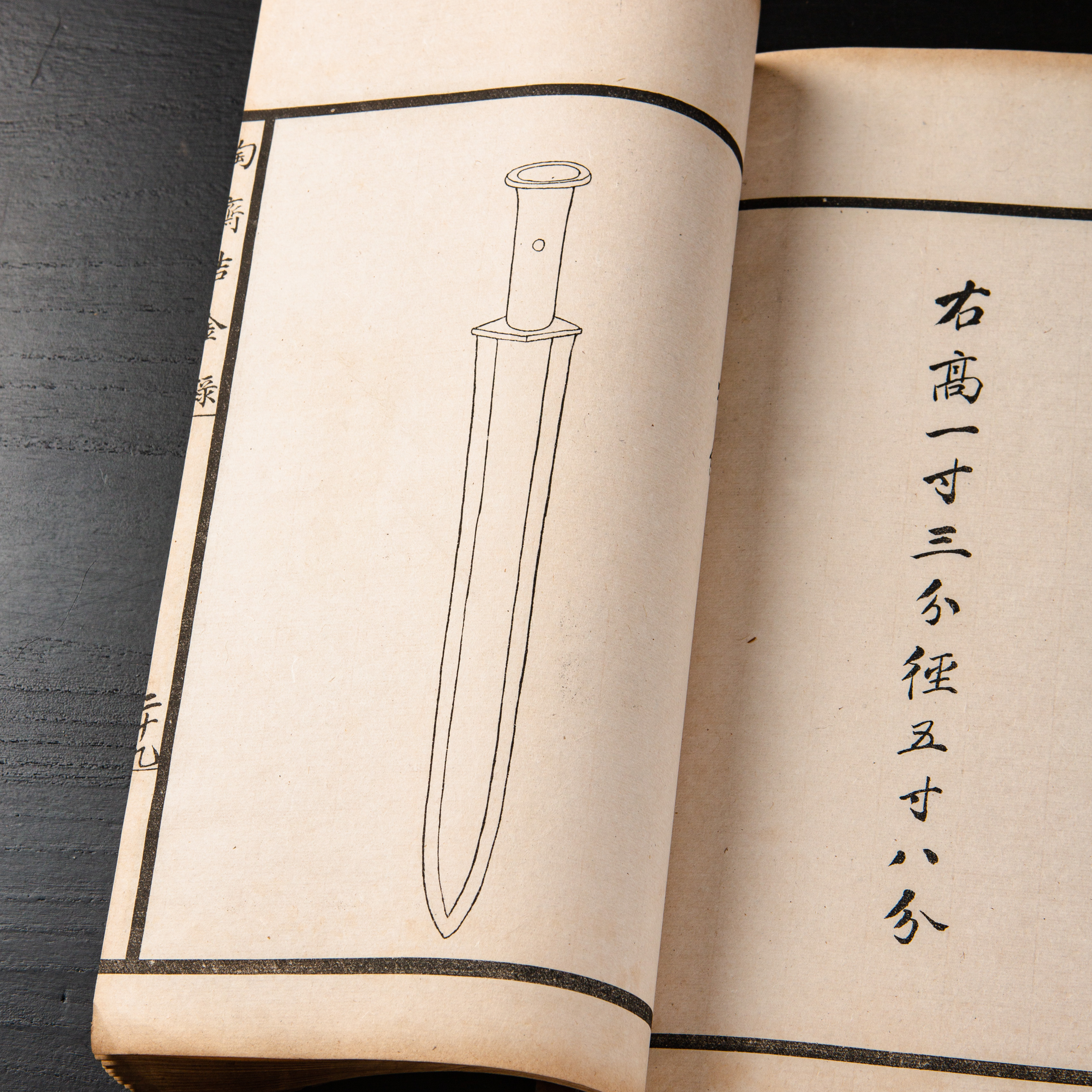《陶斋吉金录》,光绪三十四年由端方编著,该书一函八册,收录了自三代、秦汉以下的彝器及六朝以来的造像,共计359件,对每件器物都勾勒形状、摹写文字,并且都标注了尺寸,全方位展示了器物的细节,该书为研究古代礼器制度、青铜器等提供了重要资料。书中的绘图精美绝伦,是中国古代藏品绘图的巅峰之作,对研究古代绘画艺术和金石雕刻艺术具有重要的参考价值。本书所著录的器物铭文,为金石学研究和书法研究提供了丰富的资料。该书全套品相保存完好,十分难得!