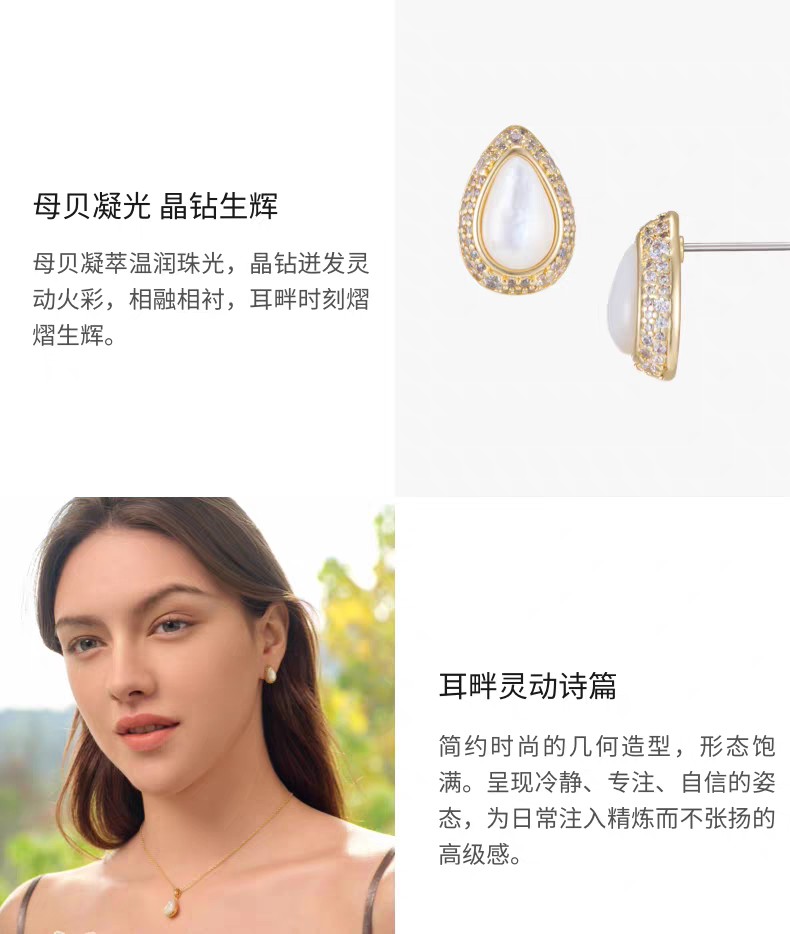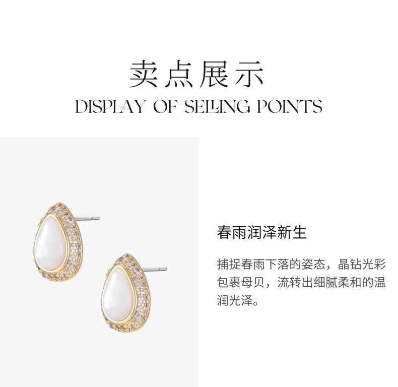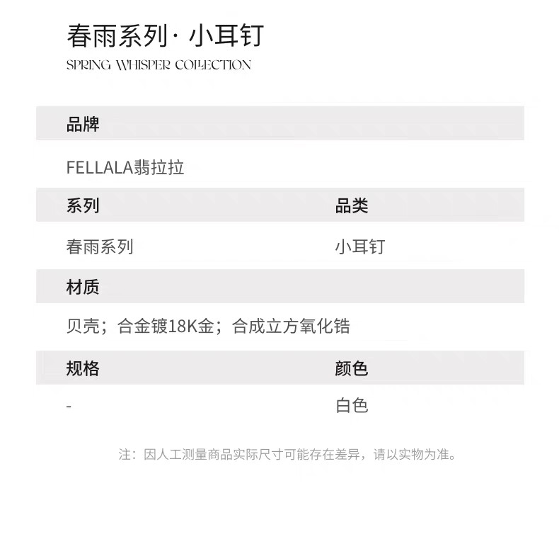 2楼Fellala/翡拉拉「春雨」耳钉耳饰时尚轻奢首饰货号926433101吊牌价699现价629