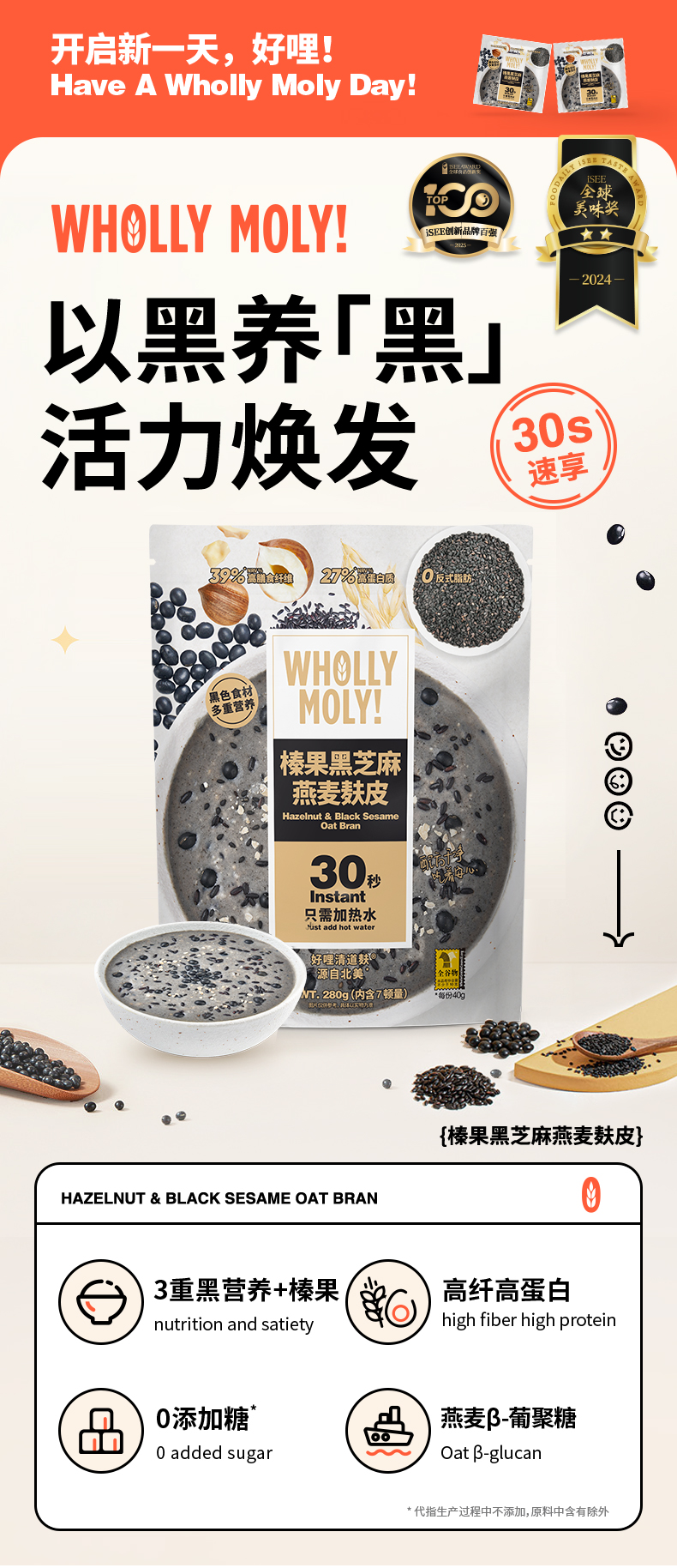 好哩!榛果黑芝麻燕麦麸皮粥/粗粮粥