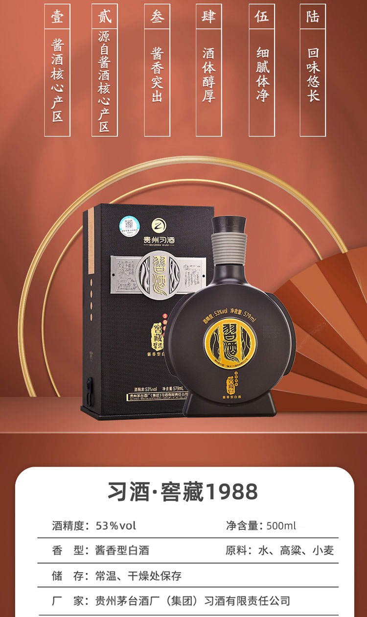 【扫码有奖】习酒窖藏1988 酱香型白酒 500ml(53度 )