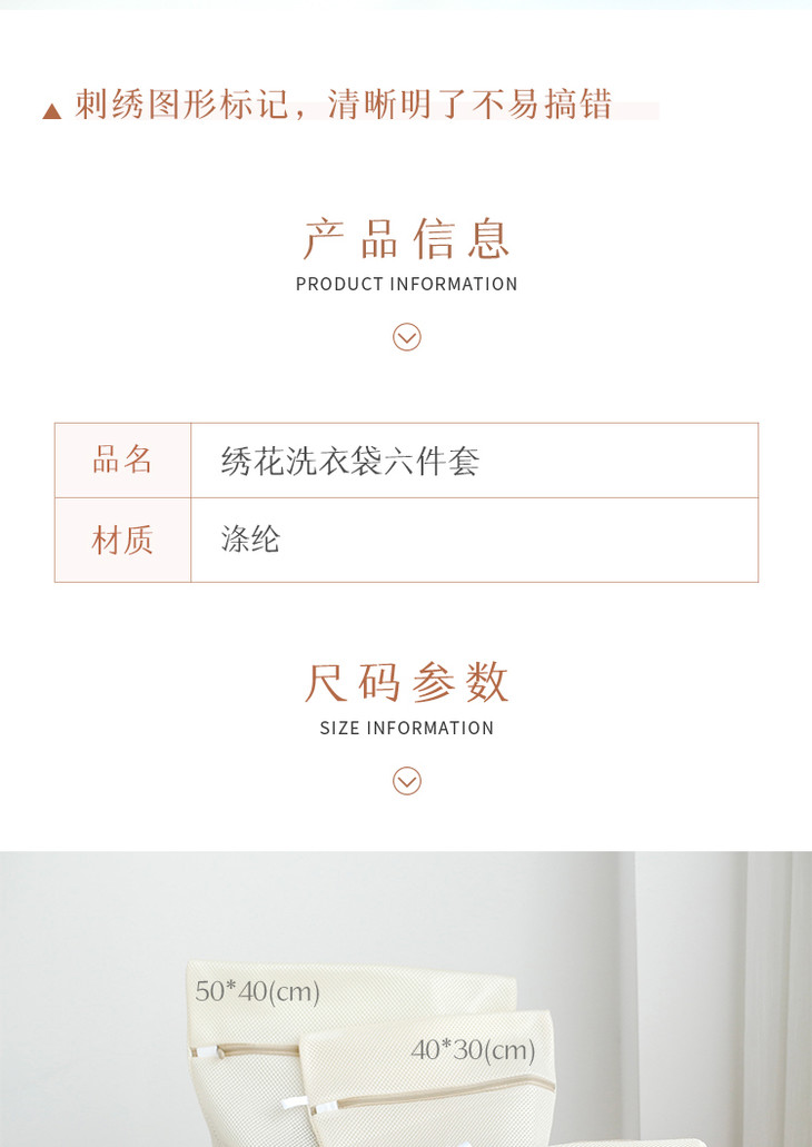 米马杂货 绣花洗衣袋六件套 丝绸羊绒内衣针织衫互不干扰