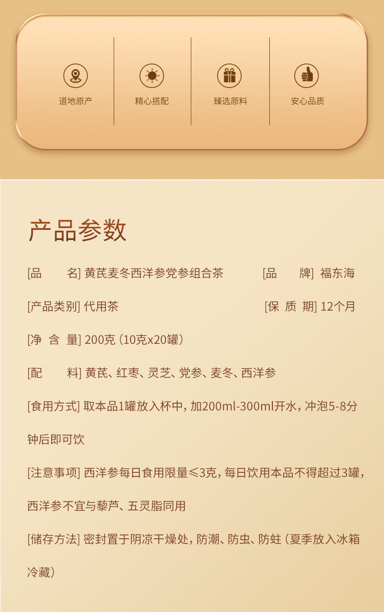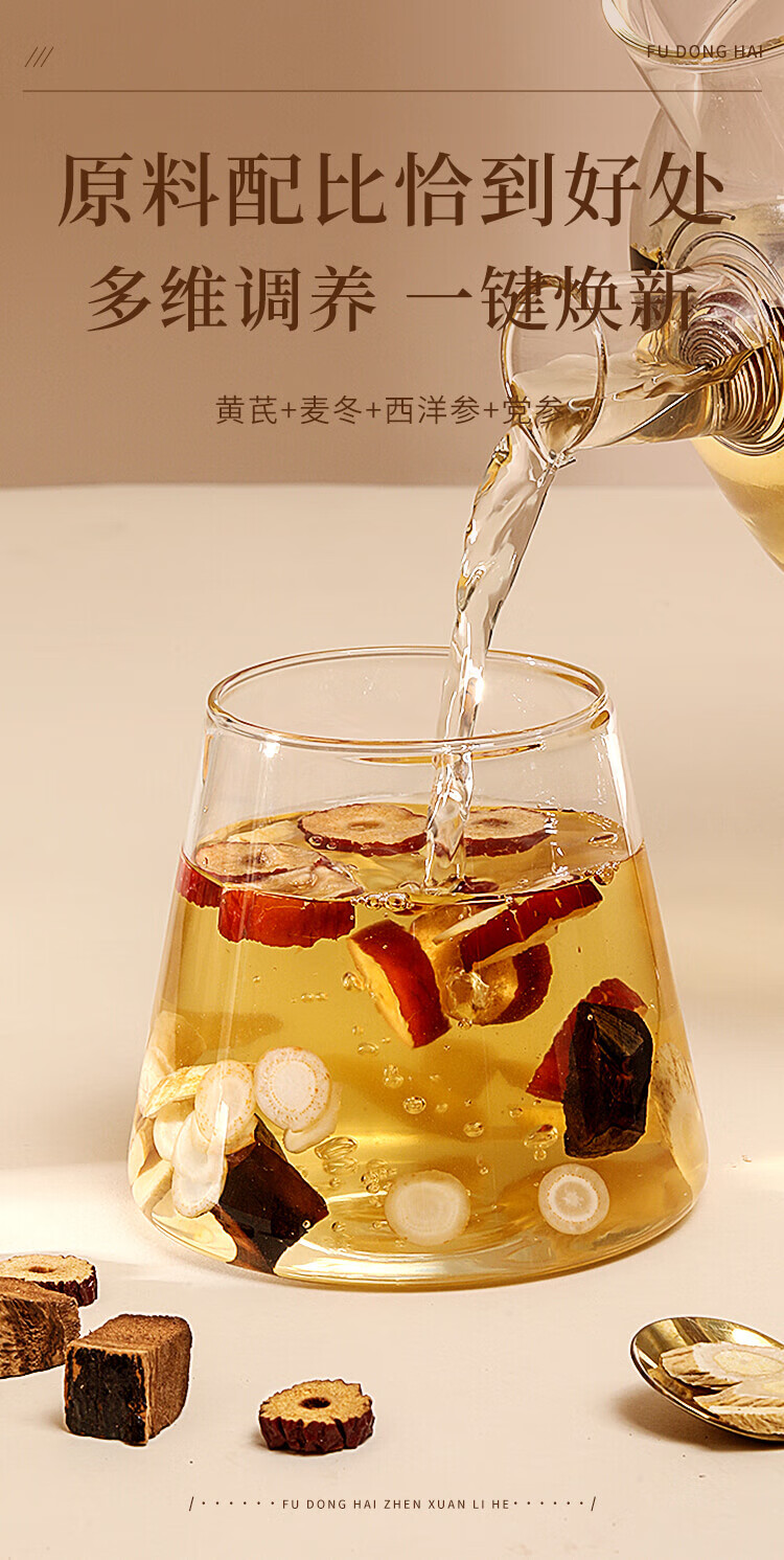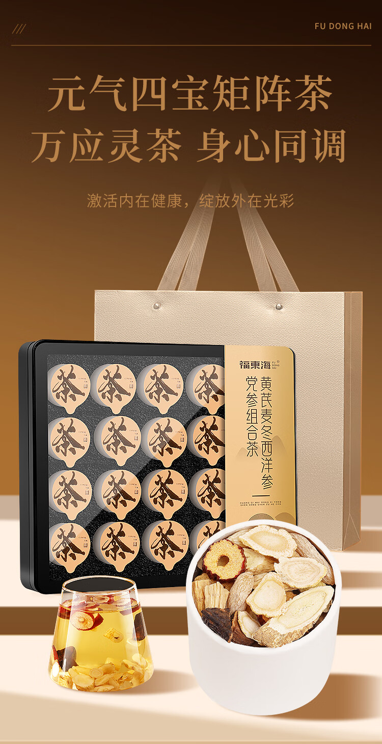 福东海 元气四宝茶200g 西洋参+麦冬+黄芪+党参组合 西洋参片茶元四宝汤煲汤炖汤食材组合材料泡水 泡茶送礼佳品