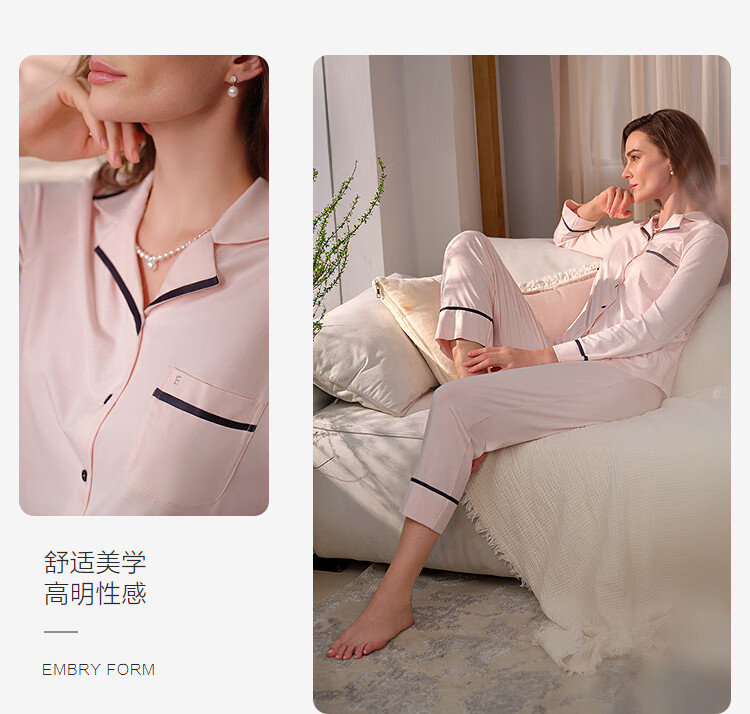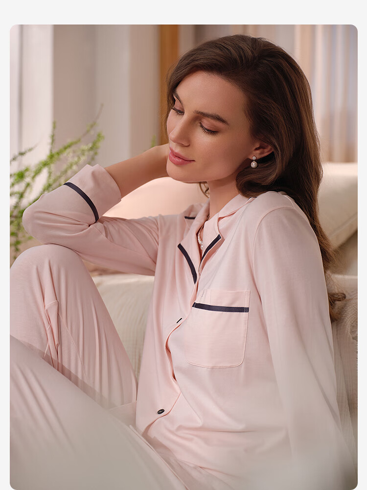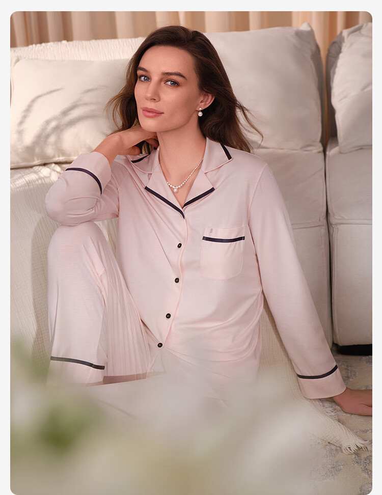 【3F】安莉芳2025莫代尔混纺撞色辑边舒适睡衣女家居服套装EL00875