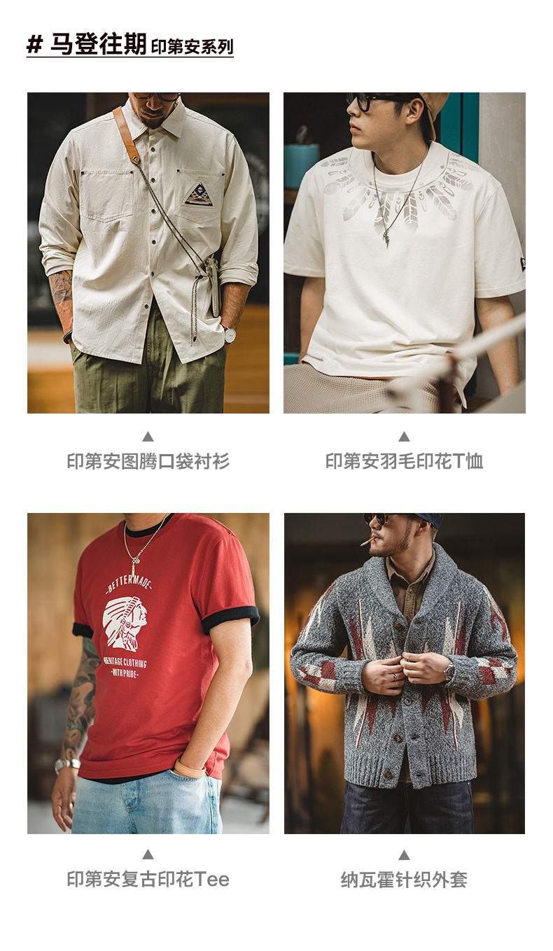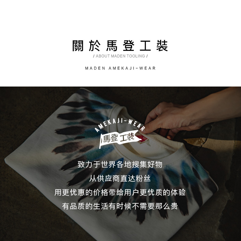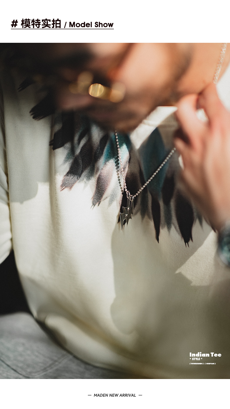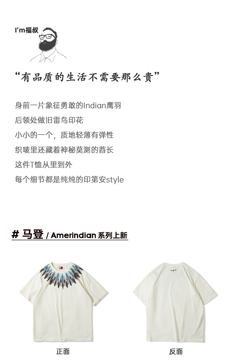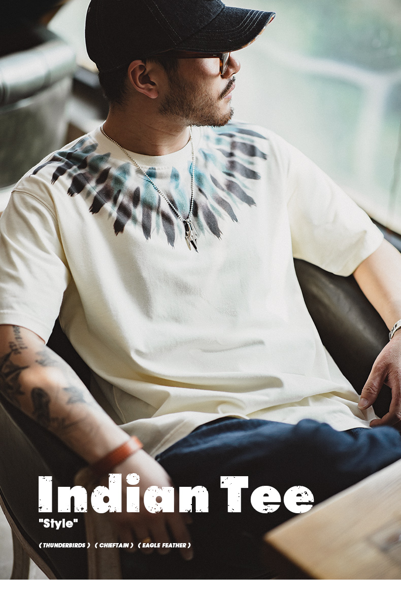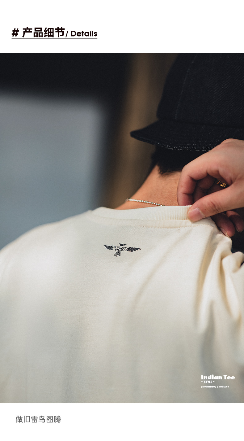工装优选 美式复古重磅印第安羽毛印花短袖做旧宽松民族风T恤男夏