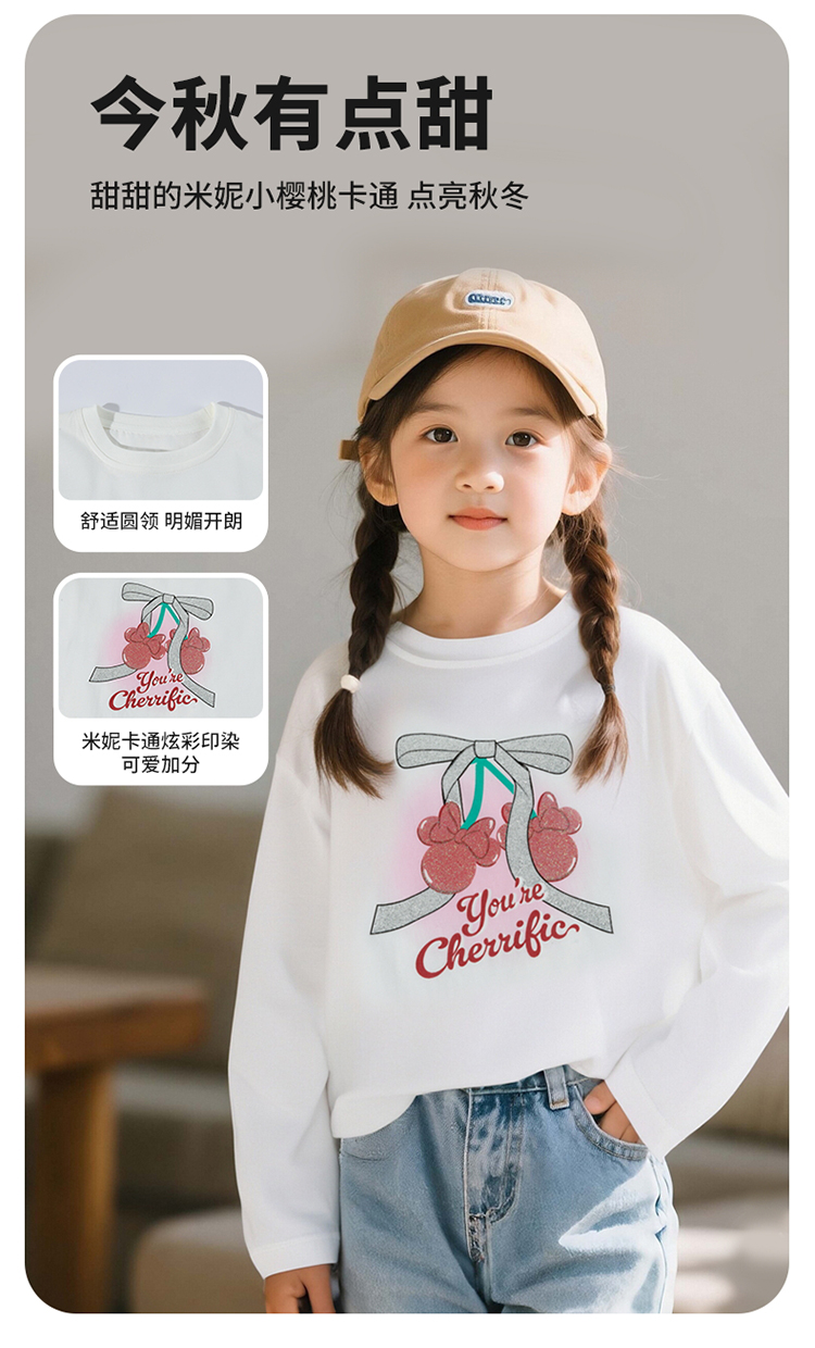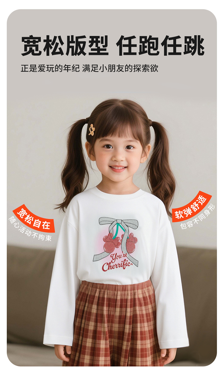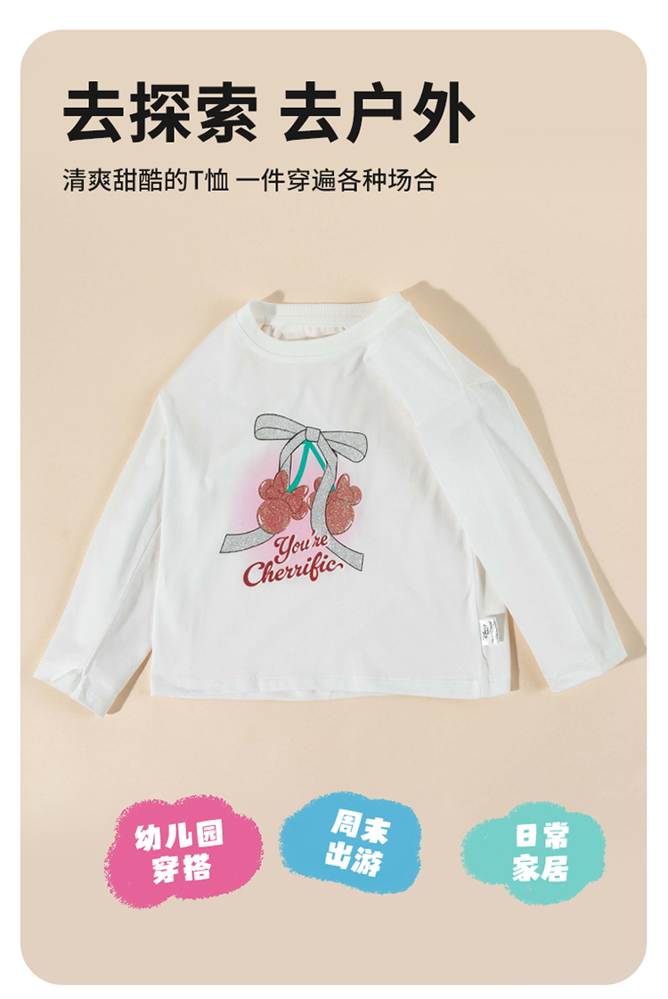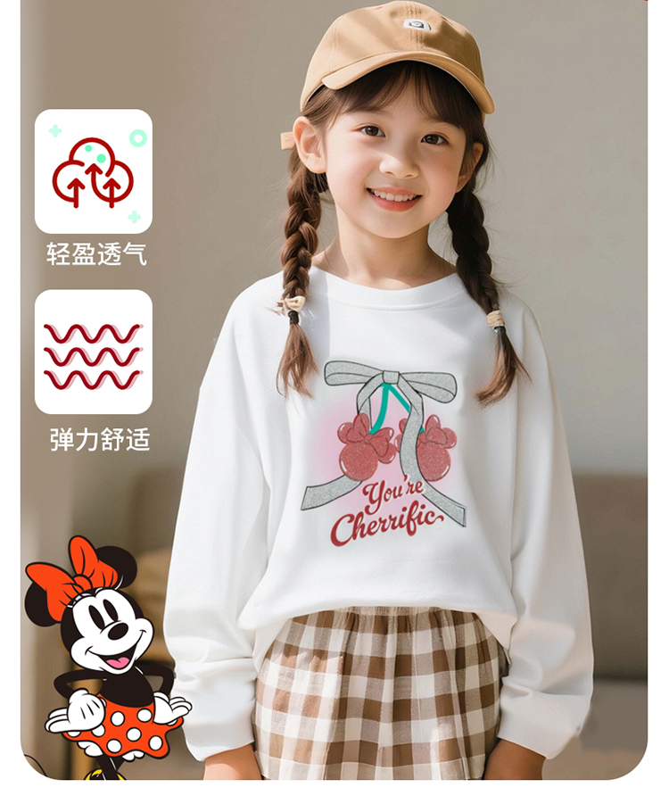 迪士尼2025春秋新款女童童装中大儿童长袖T恤棉弹舒适运动休闲上衣XD3ES028
