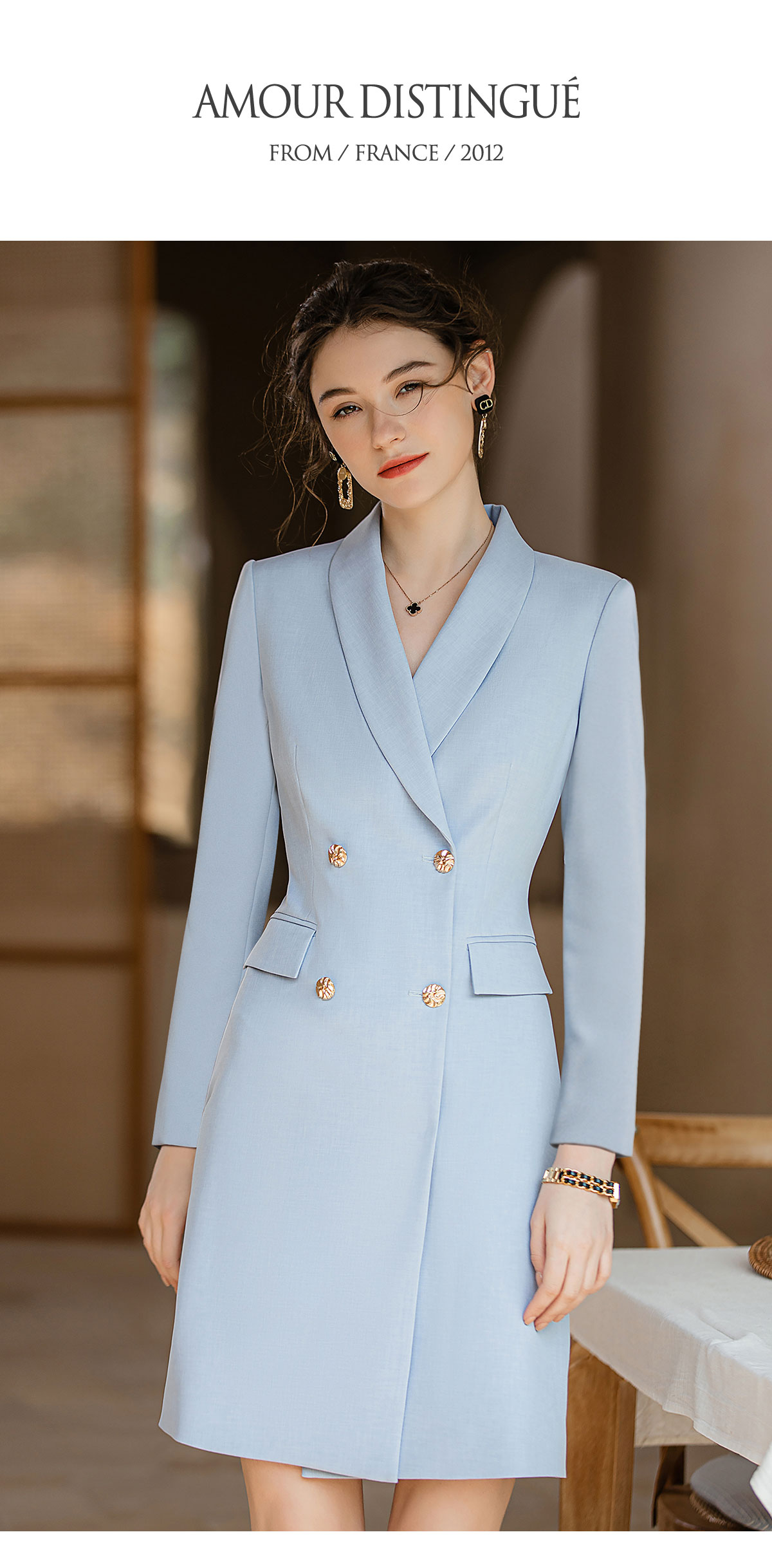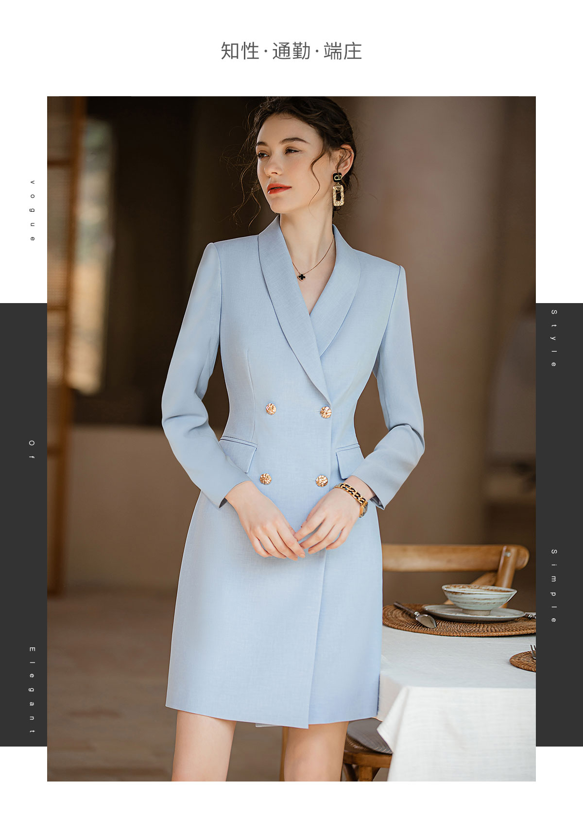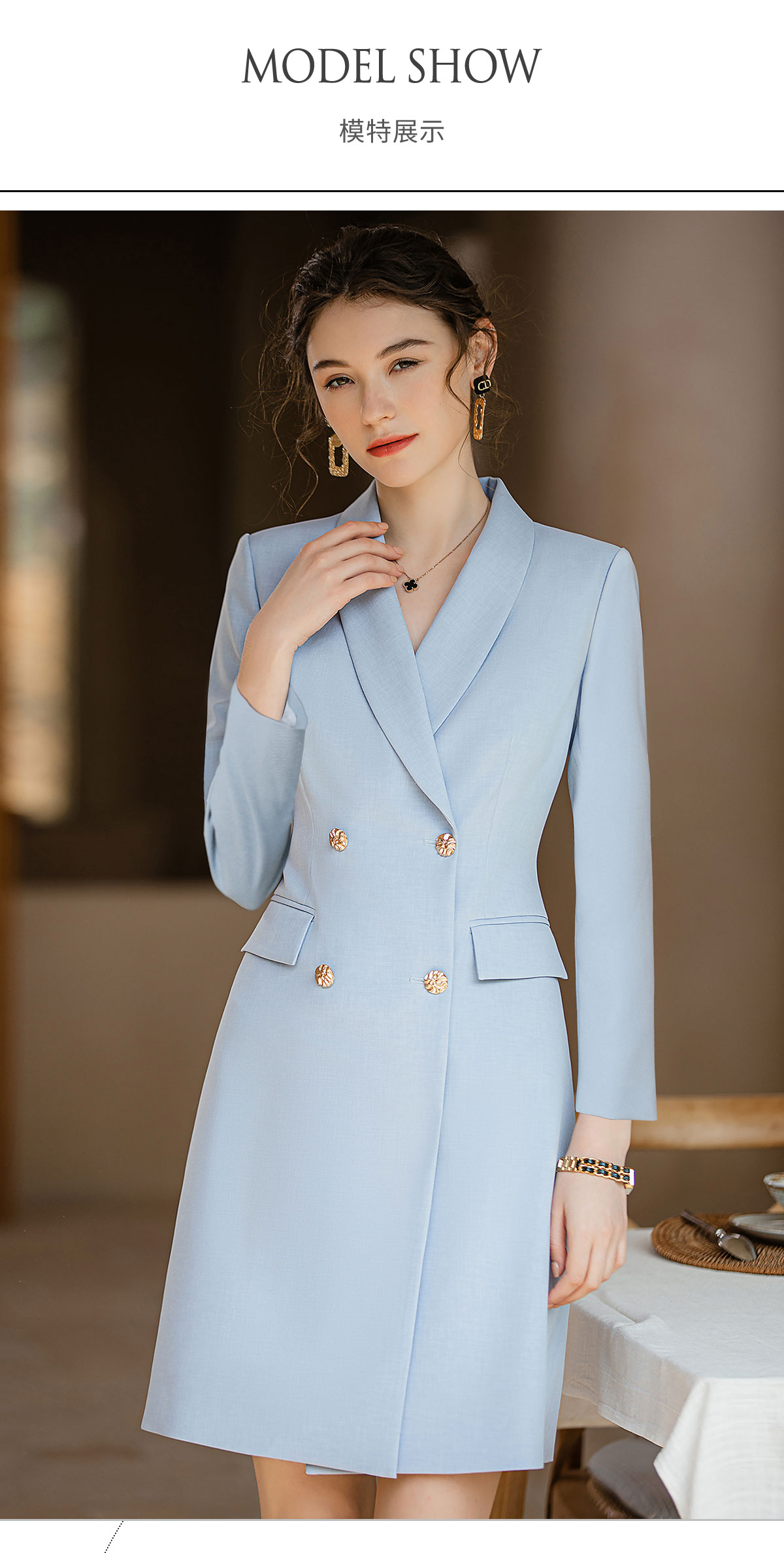 AD主持人西装连衣裙女2023年秋装新款蓝色职业装气质女神范正装裙
