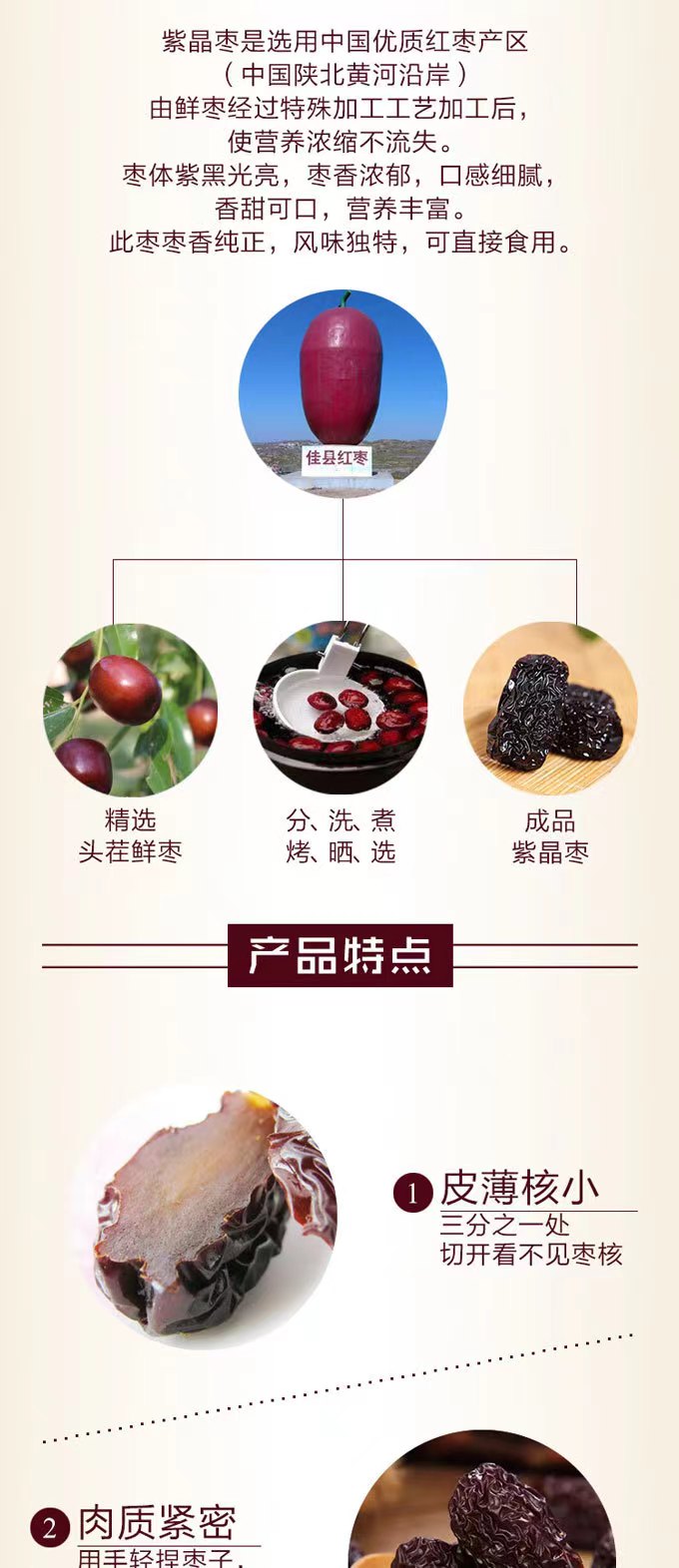 陕北紫晶枣 皮薄核小 口感香甜 软糯细腻