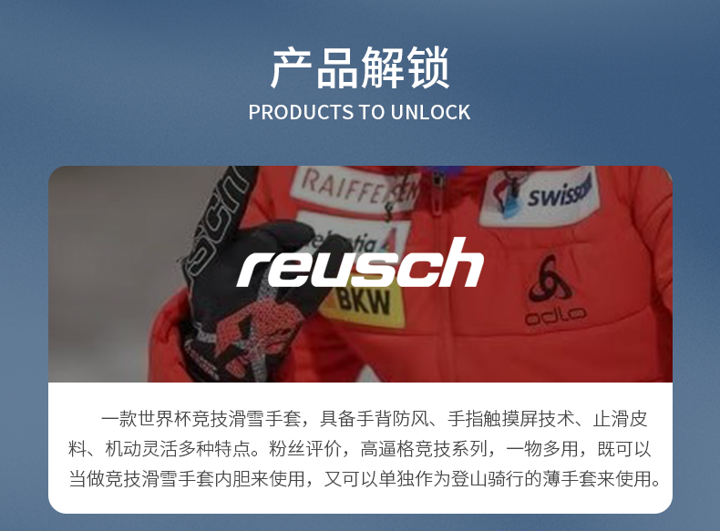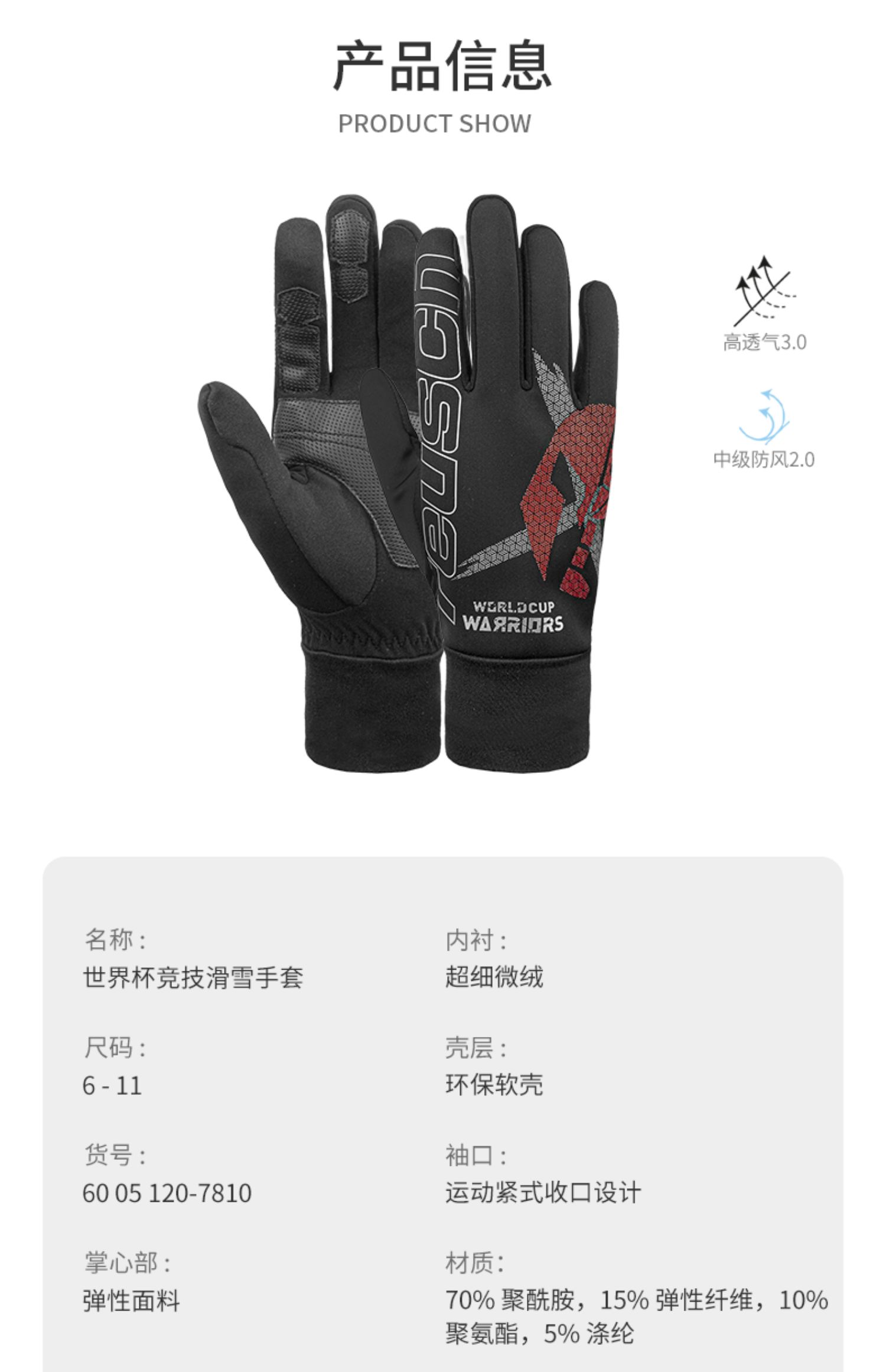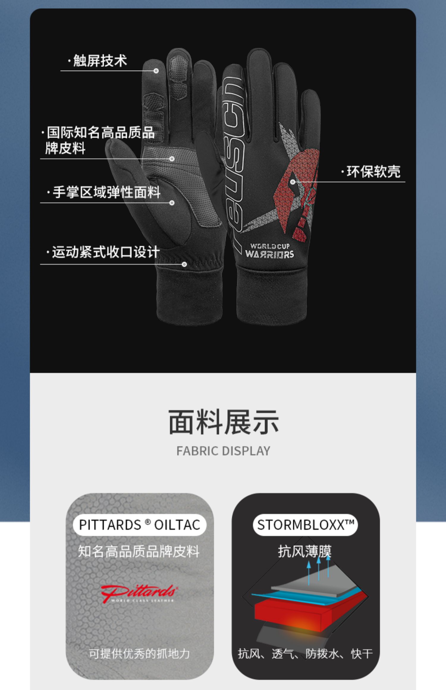 Reusch炫驰男女款世界杯勇士内胆滑雪手套触屏技术防风6005120