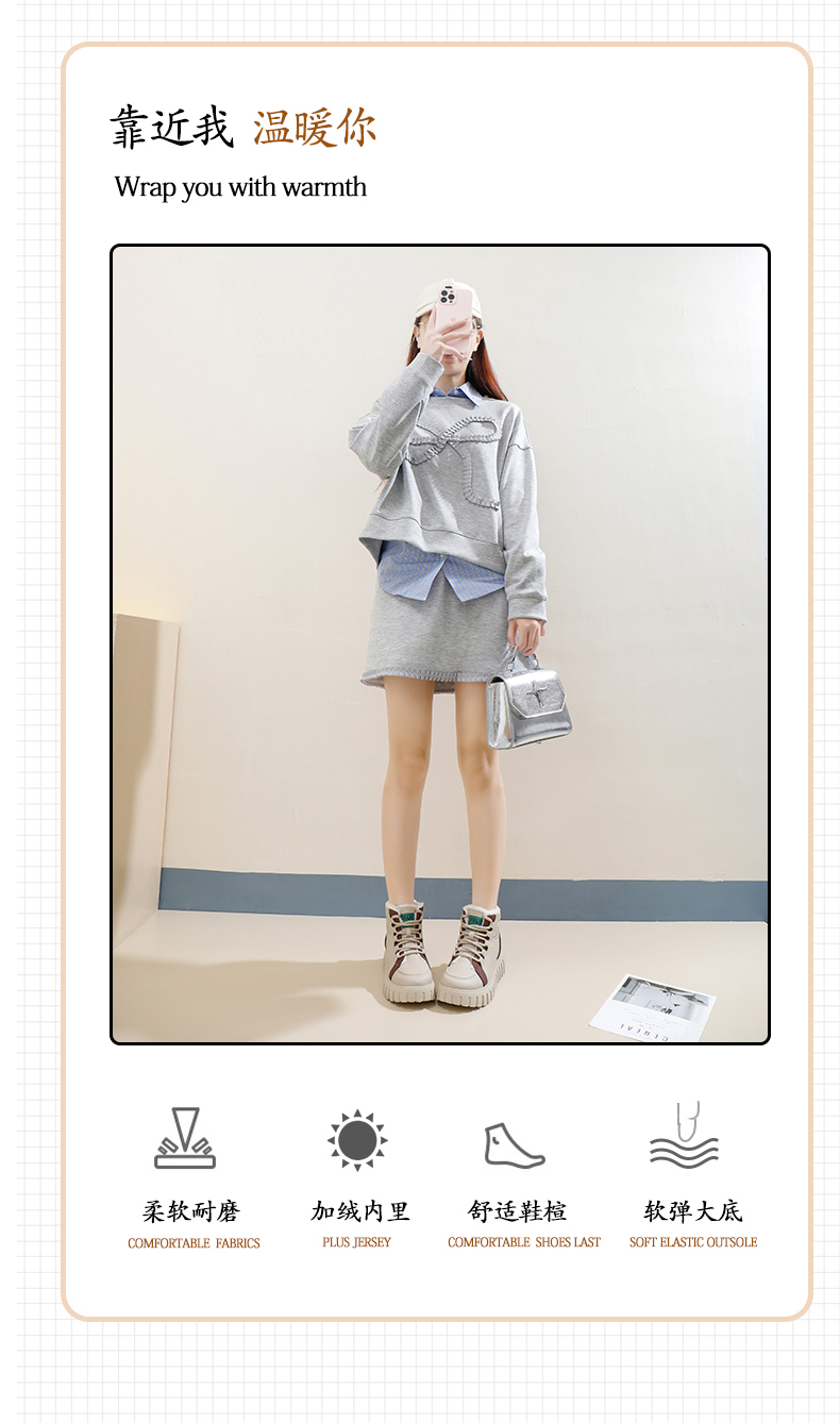 「AILISCOCO加绒厚底高邦棉鞋」绒毛内里持久恒温 圆形鞋头贴合脚型 耐磨防滑大底柔软轻便 纹理舒适自然 柔软舒适
