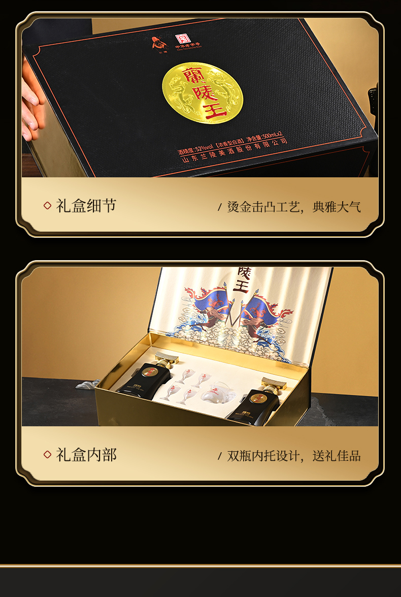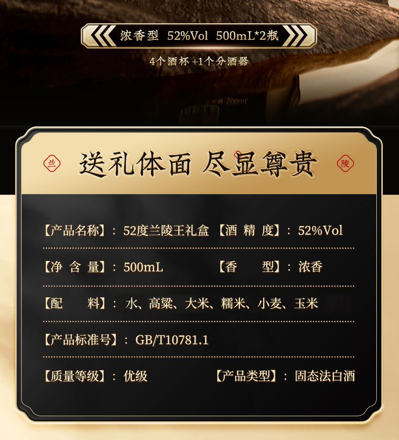 兰陵 兰陵黑王礼盒 52度浓香型白酒500mL*2礼盒装 内置一个分酒器四个小酒杯