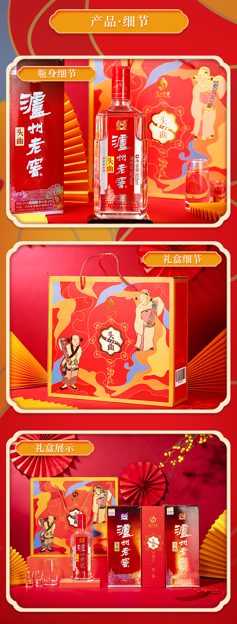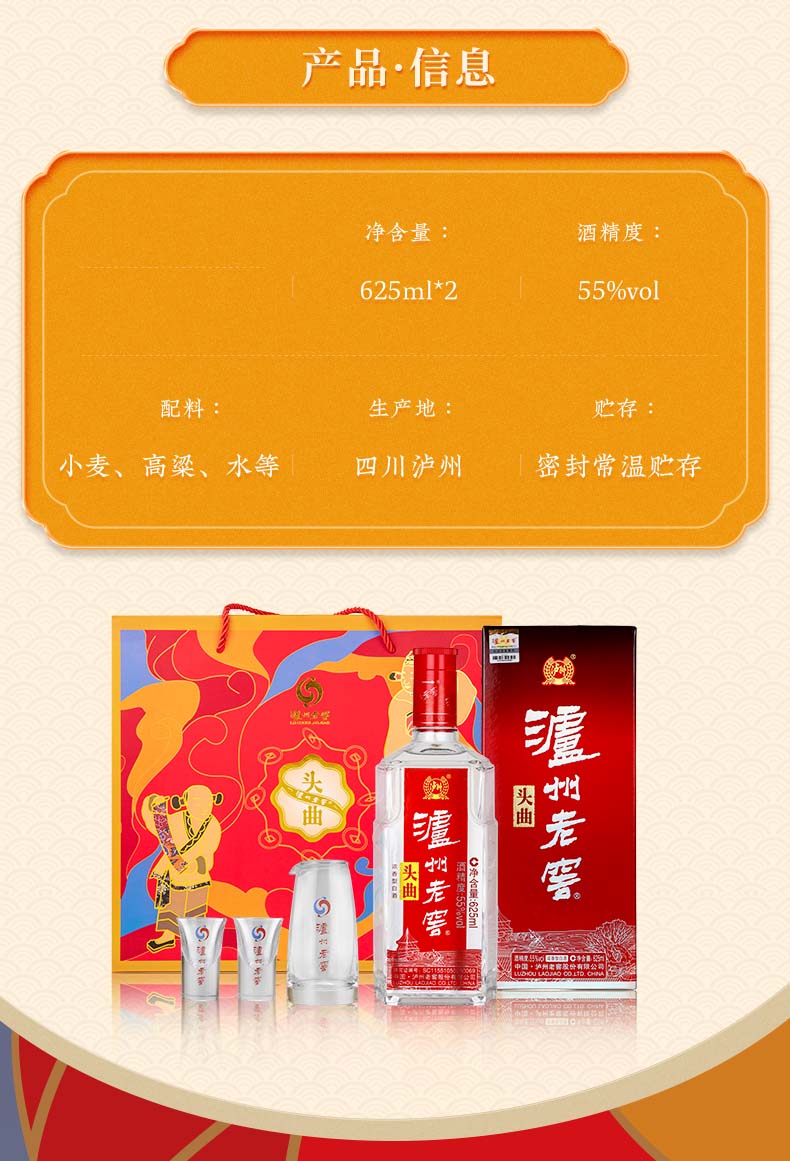 【送礼自饮组合】55度泸州老窖头曲富贵吉祥礼盒625ml*2*2+52度泸州酒雅纯500ml*6 泸州老窖官方旗舰店