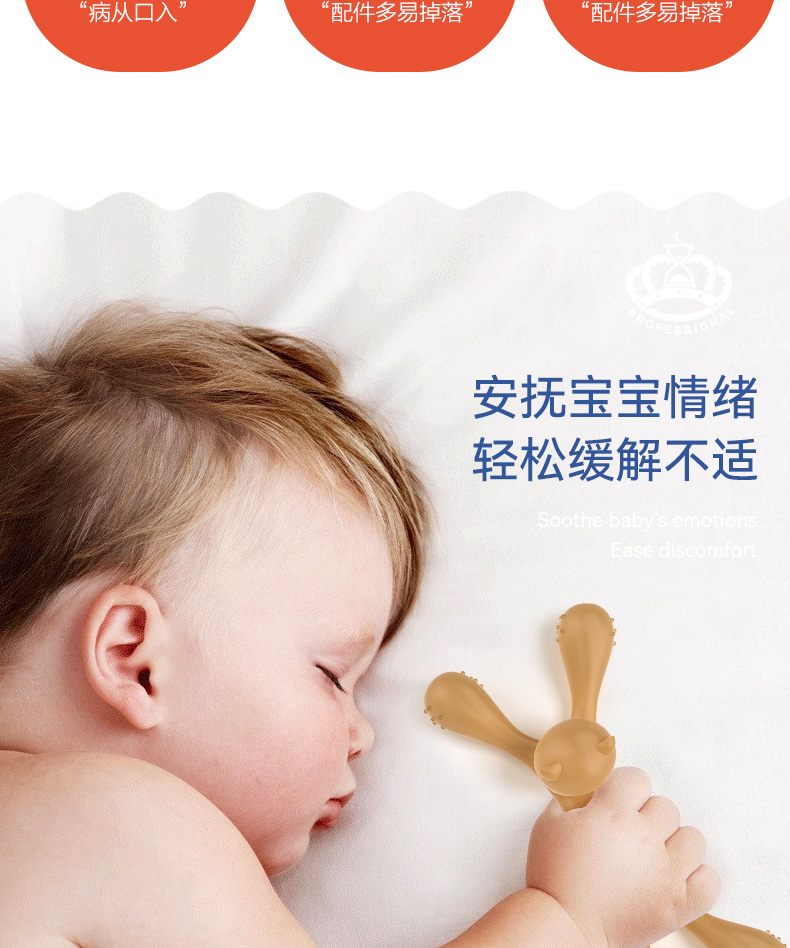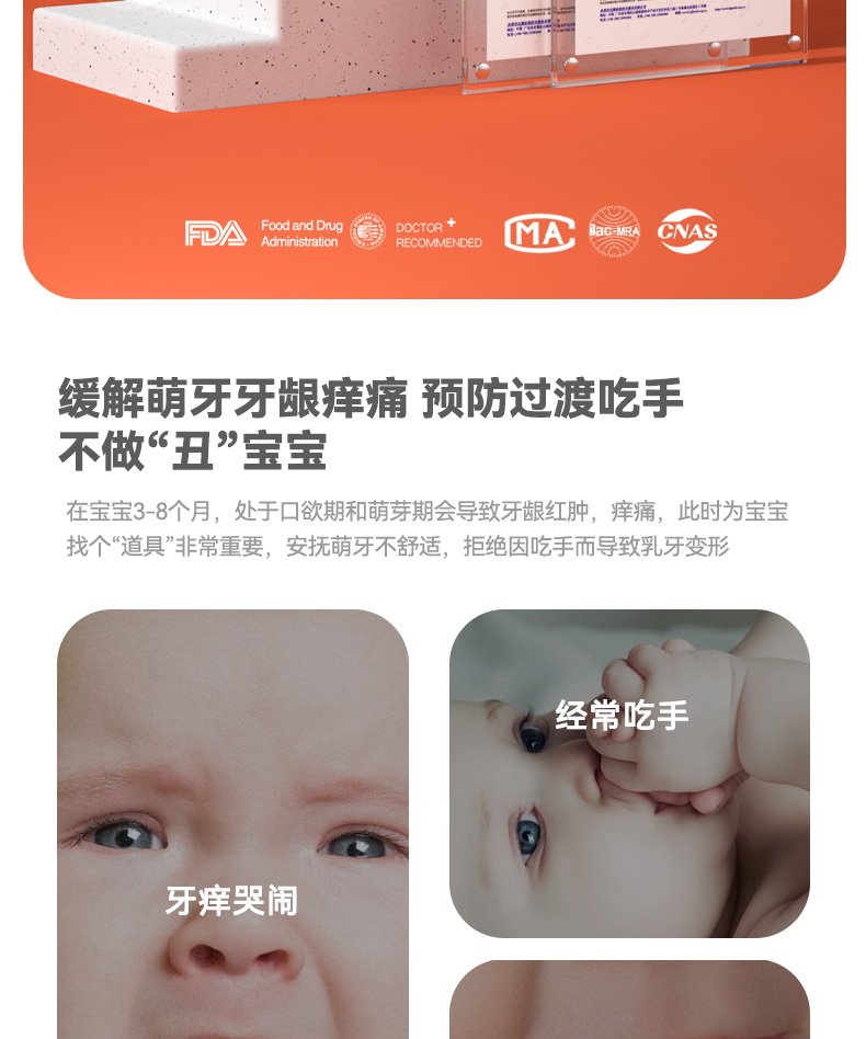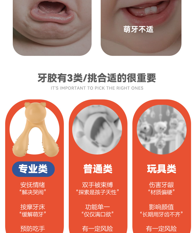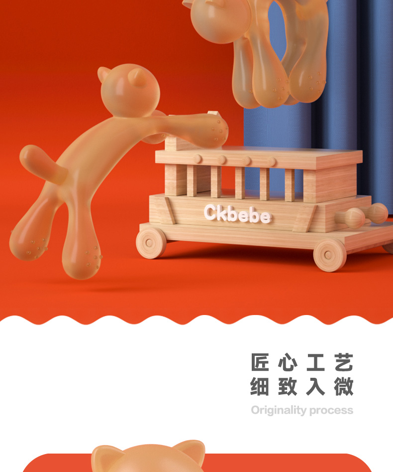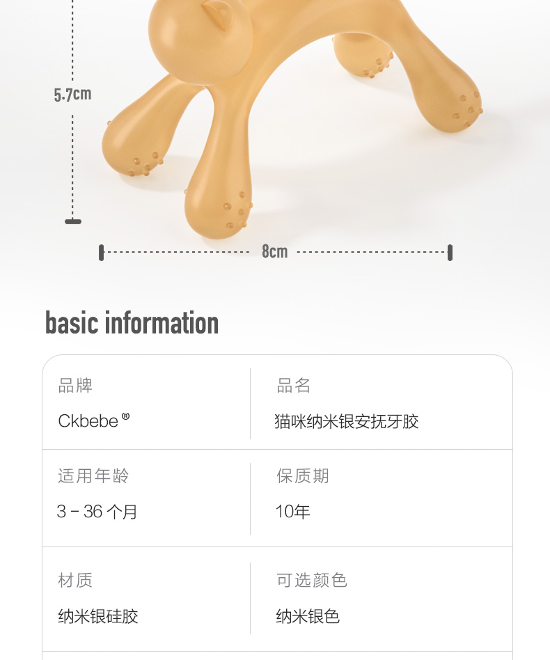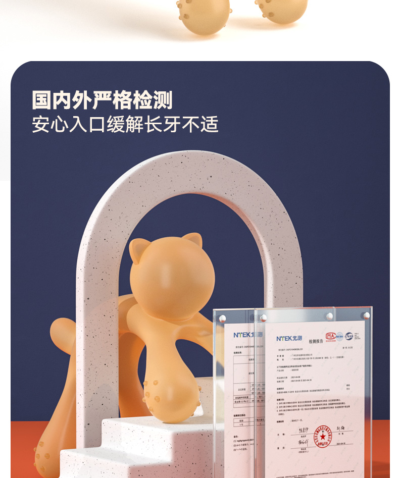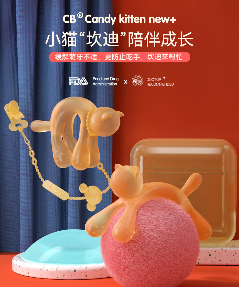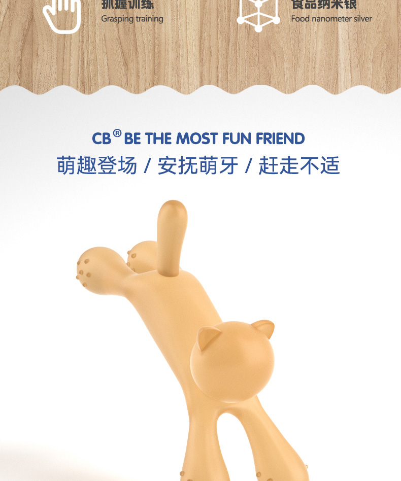 CKbebe正版小猫咪牙胶液态硅胶防卡喉按摩牙龈磨牙棒咬胶儿童玩具
