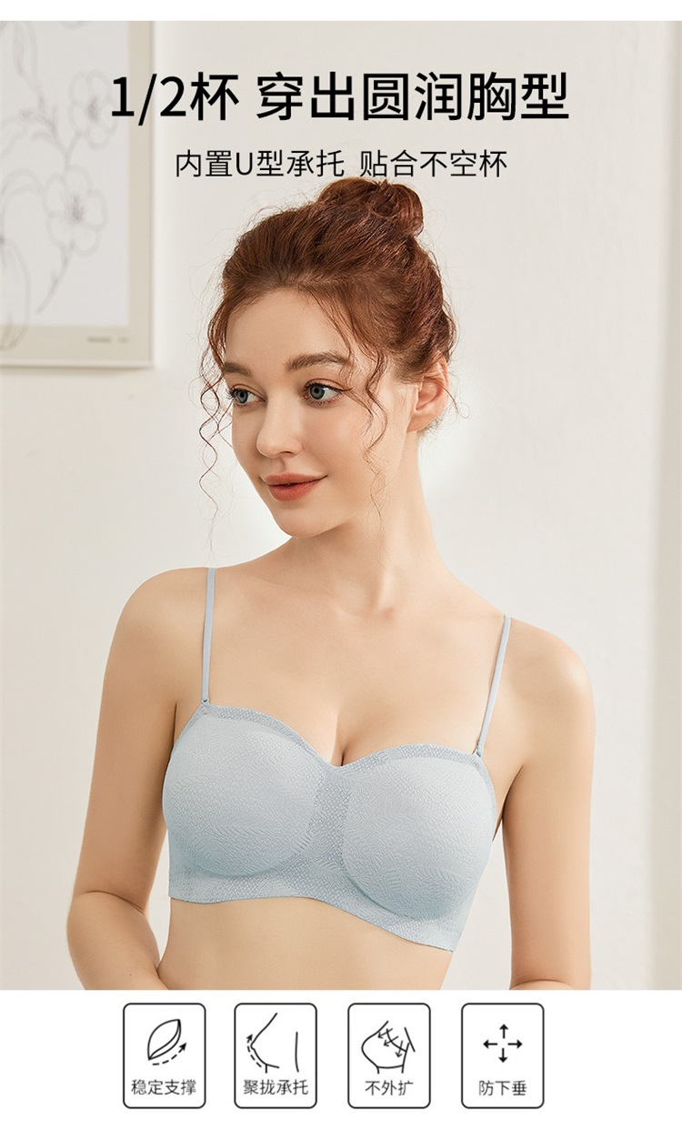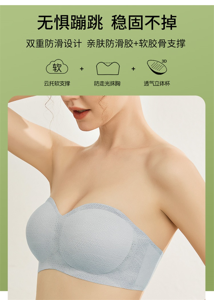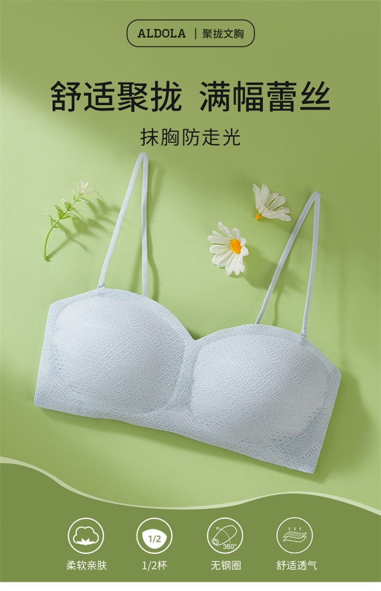 雅黛丽吸盘式无肩带防滑聚拢舒适防走光抹胸式文胸甜美蕾丝薄杯内衣