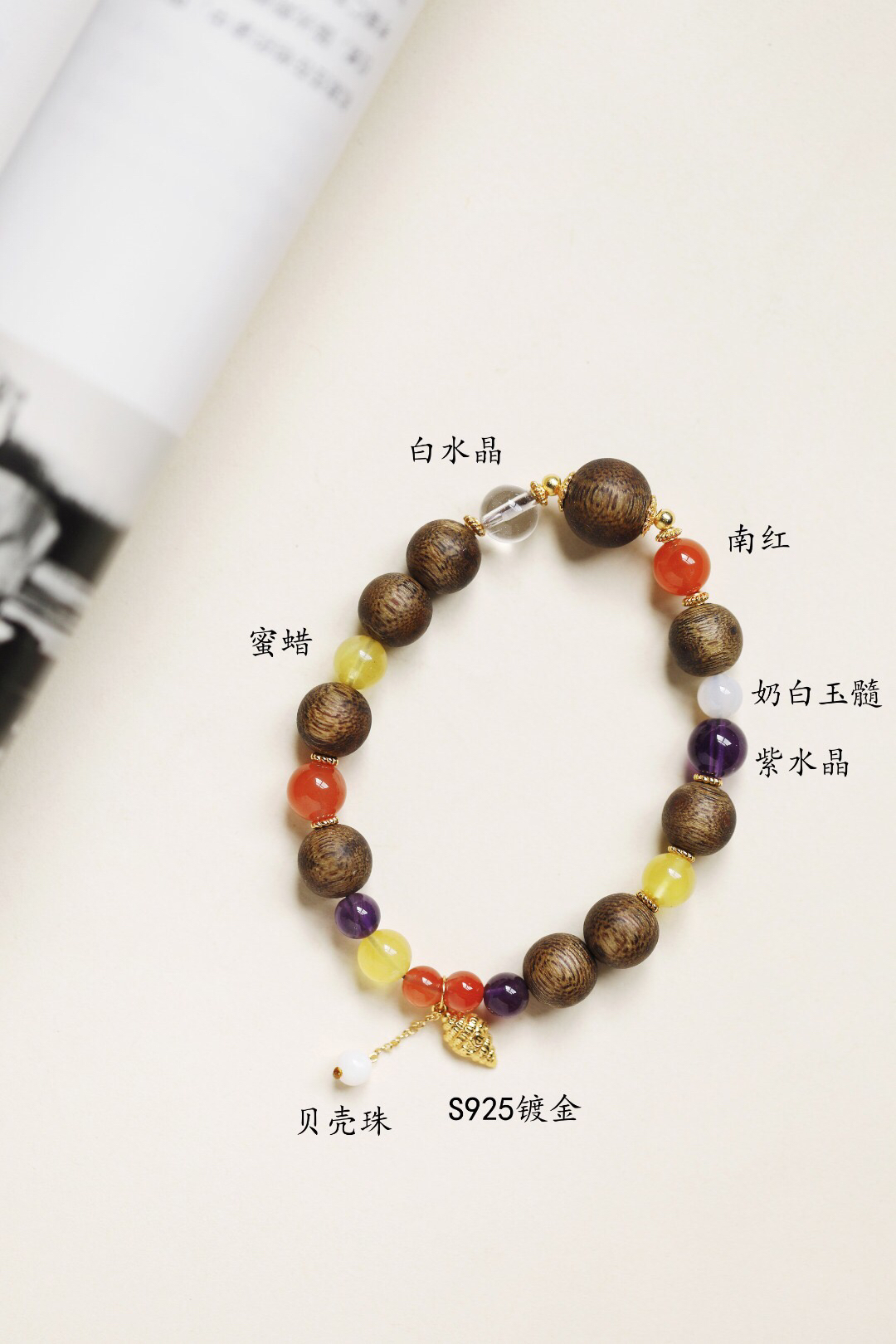 配件:南红、蜜蜡、s925镀金、白水晶、紫水晶、贝壳珠、奶白玉髓