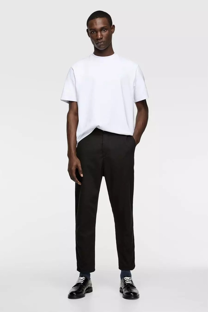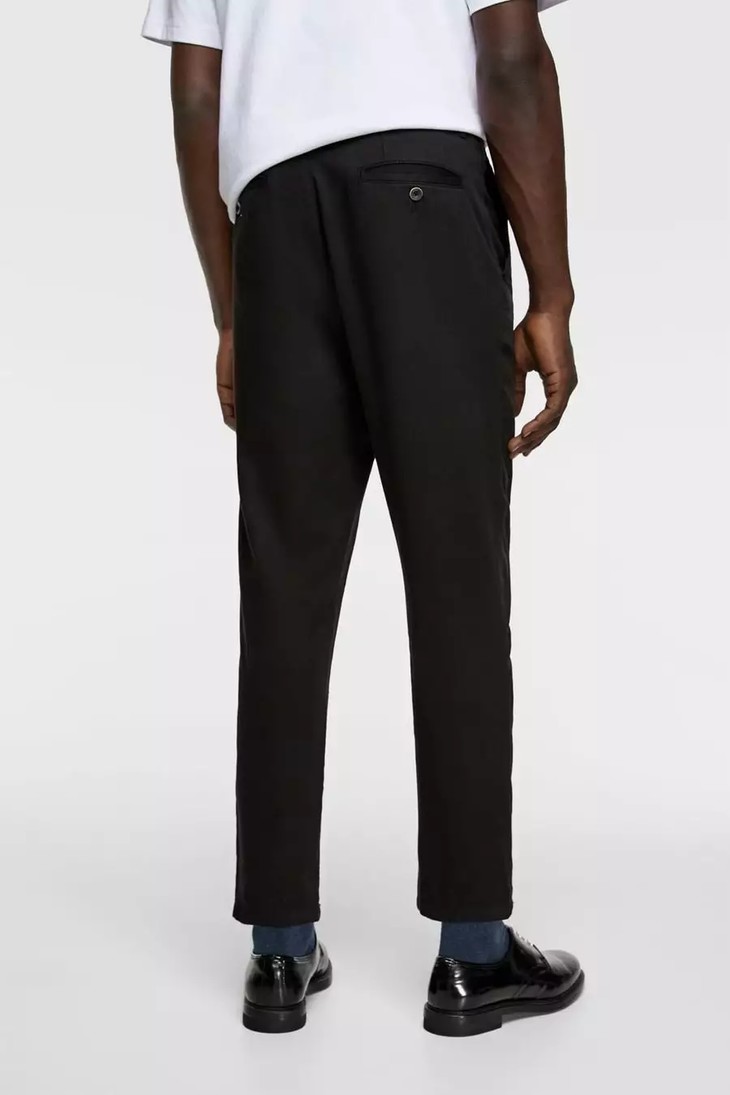 长裤采用直筒裤型设计,臀部设斜口袋,