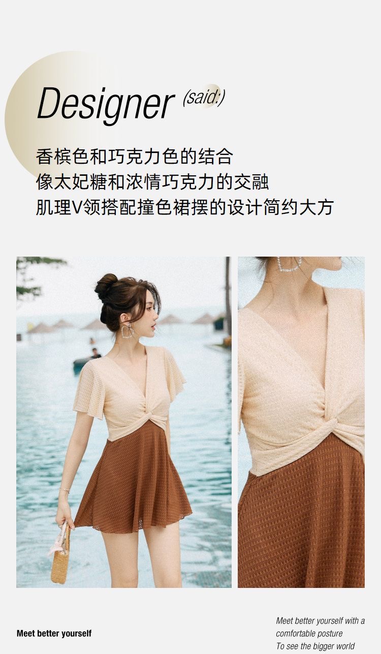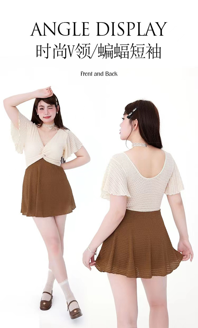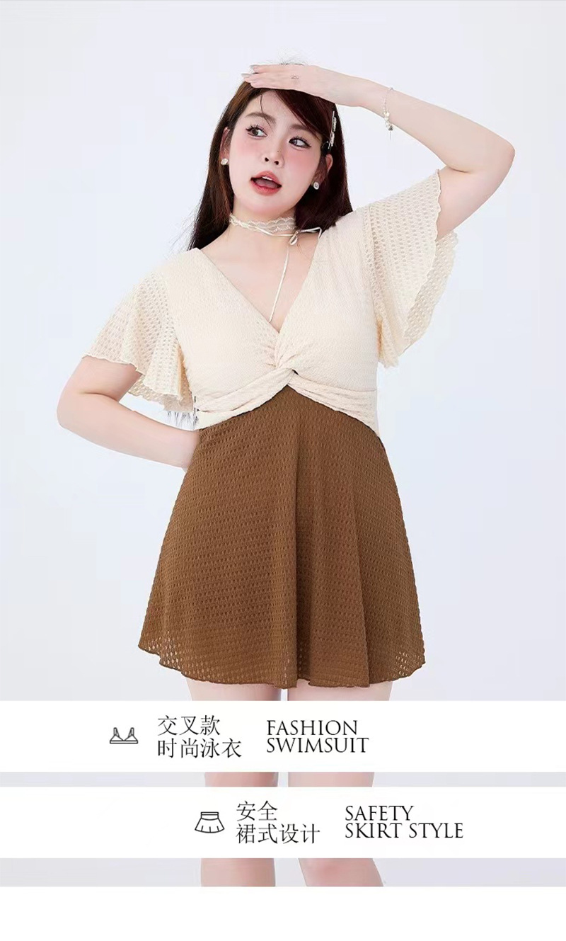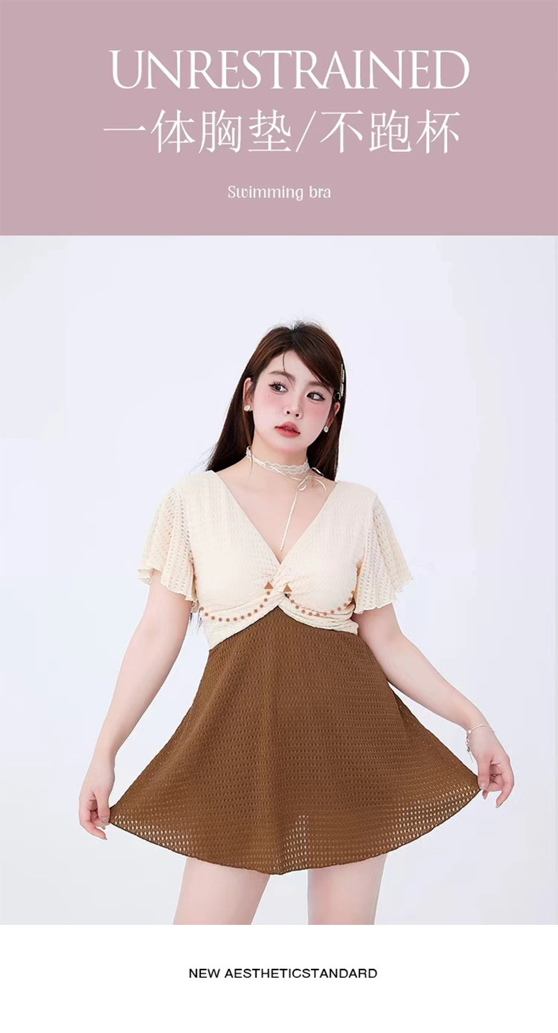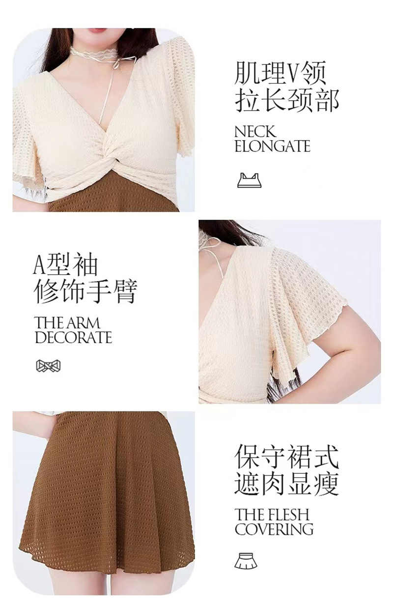 【朋友圈爆款!保守显瘦泳衣两件套】自带内衣文胸垫安全打底裤,游泳、温泉、瑜伽一套搞定,各种身材轻松驾驭!大码泳衣女款拼色平角裤裙式遮肉遮肚温泉