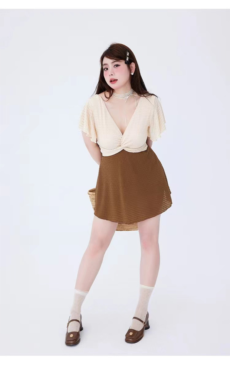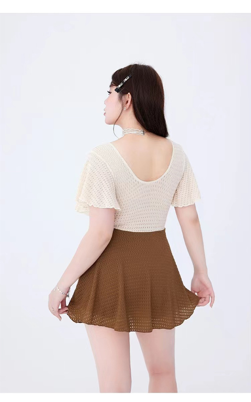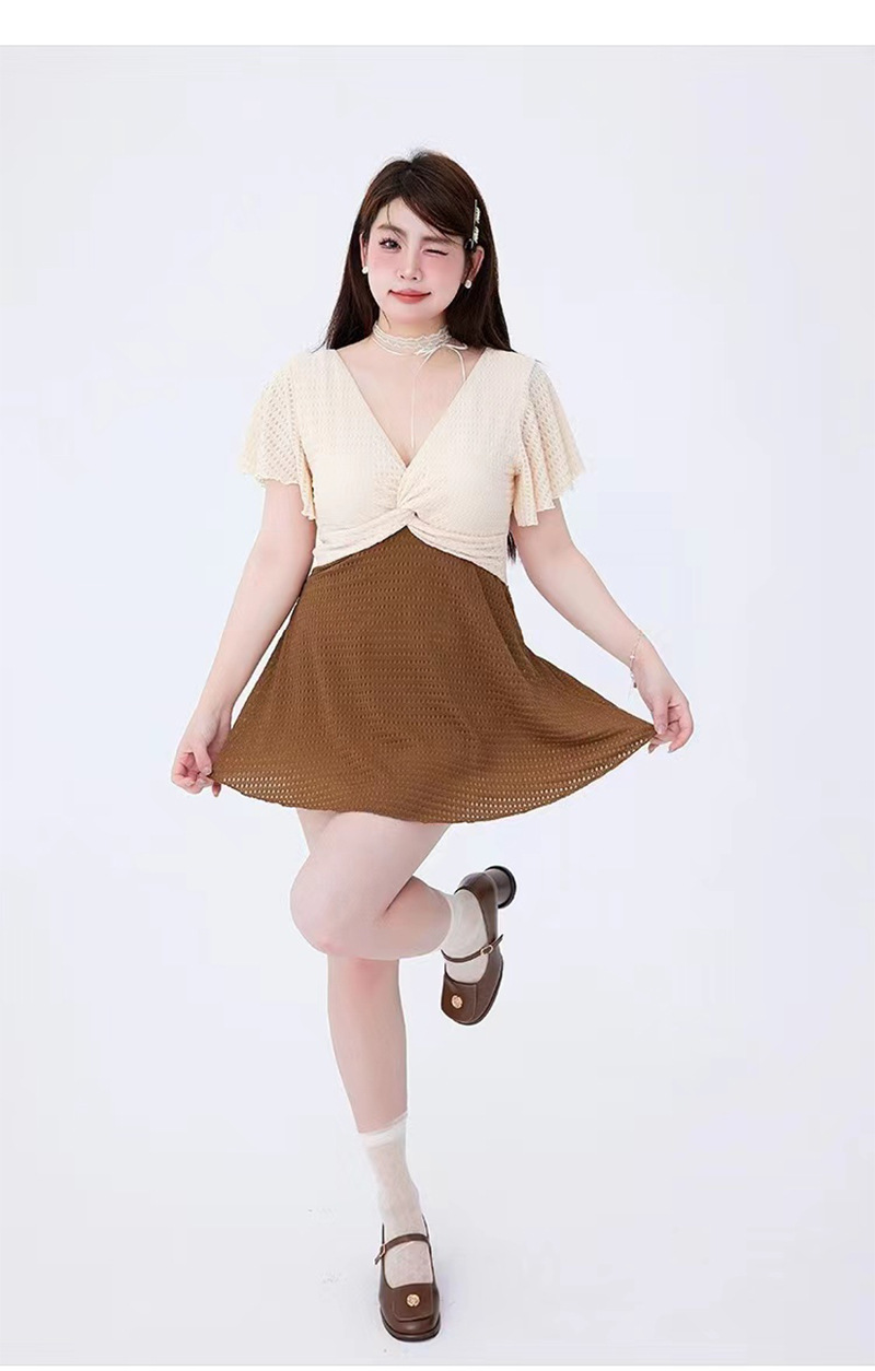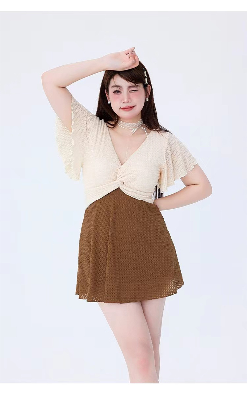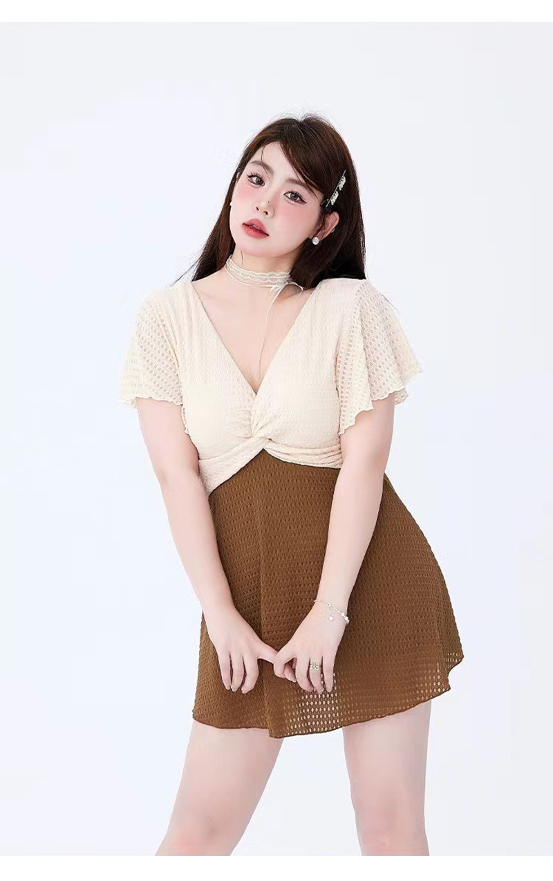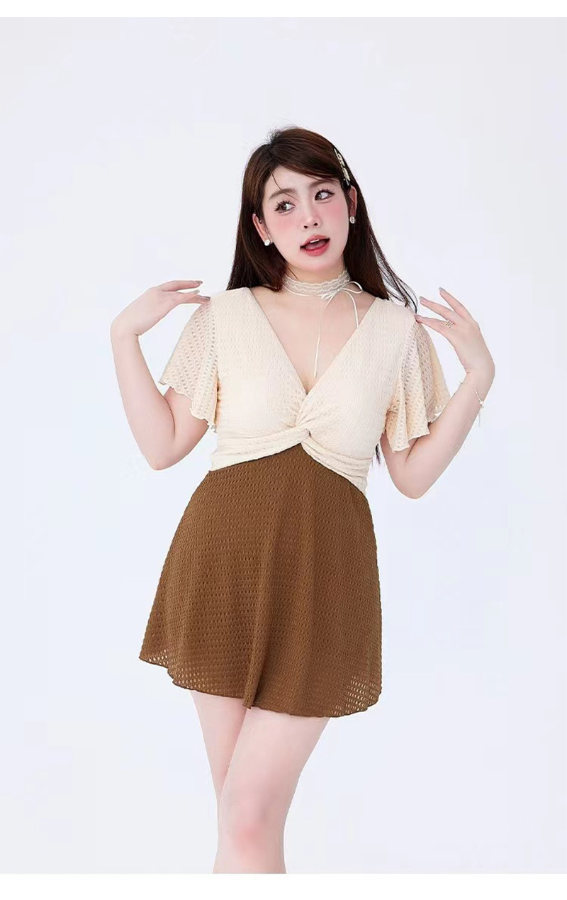 【朋友圈爆款!保守显瘦泳衣两件套】自带内衣文胸垫安全打底裤,游泳、温泉、瑜伽一套搞定,各种身材轻松驾驭!大码泳衣女款拼色平角裤裙式遮肉遮肚温泉