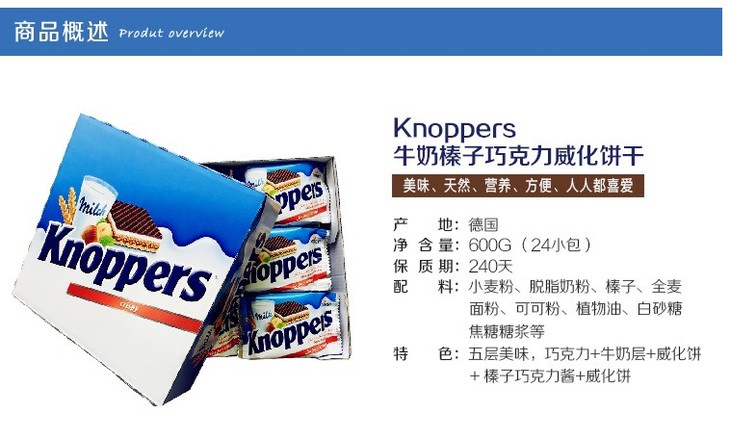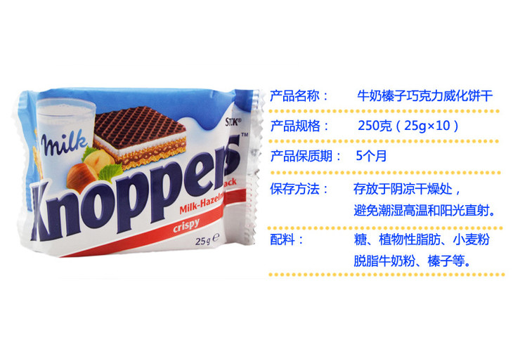 【德国】*威化 knoppers牛奶榛子巧克力威化饼干10联包/单片