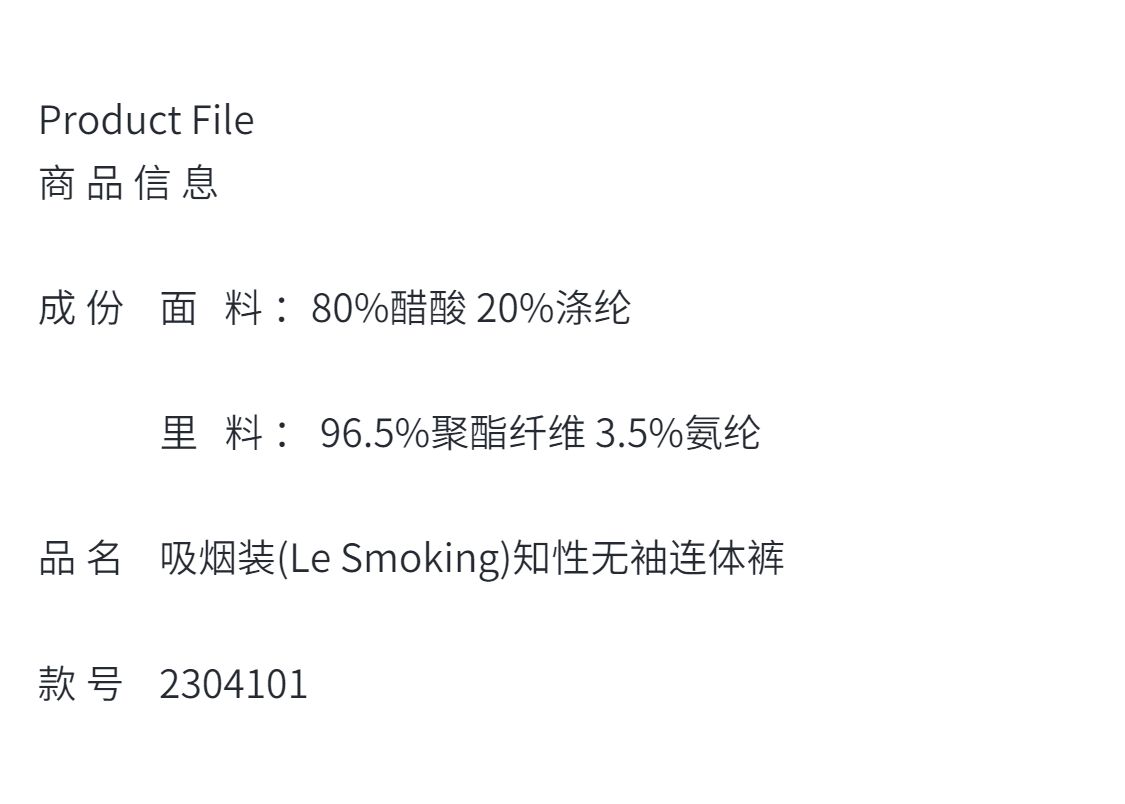 定制—精剪入微—吸烟装(Le Smoking)知性无袖显瘦连体裤2304101