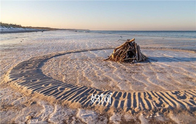 也是黄昏的沙滩上有着脚印两对半