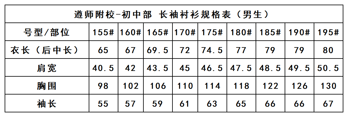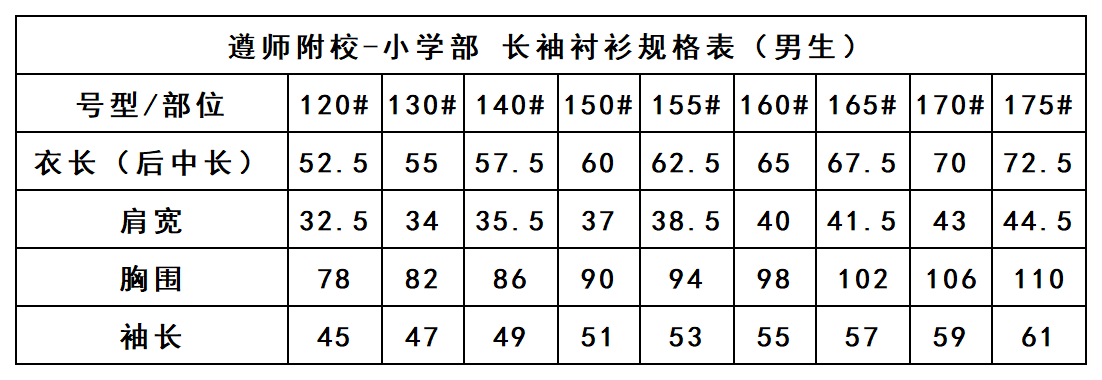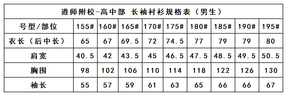 遵师附校-男长袖衬衫(领结不包含)