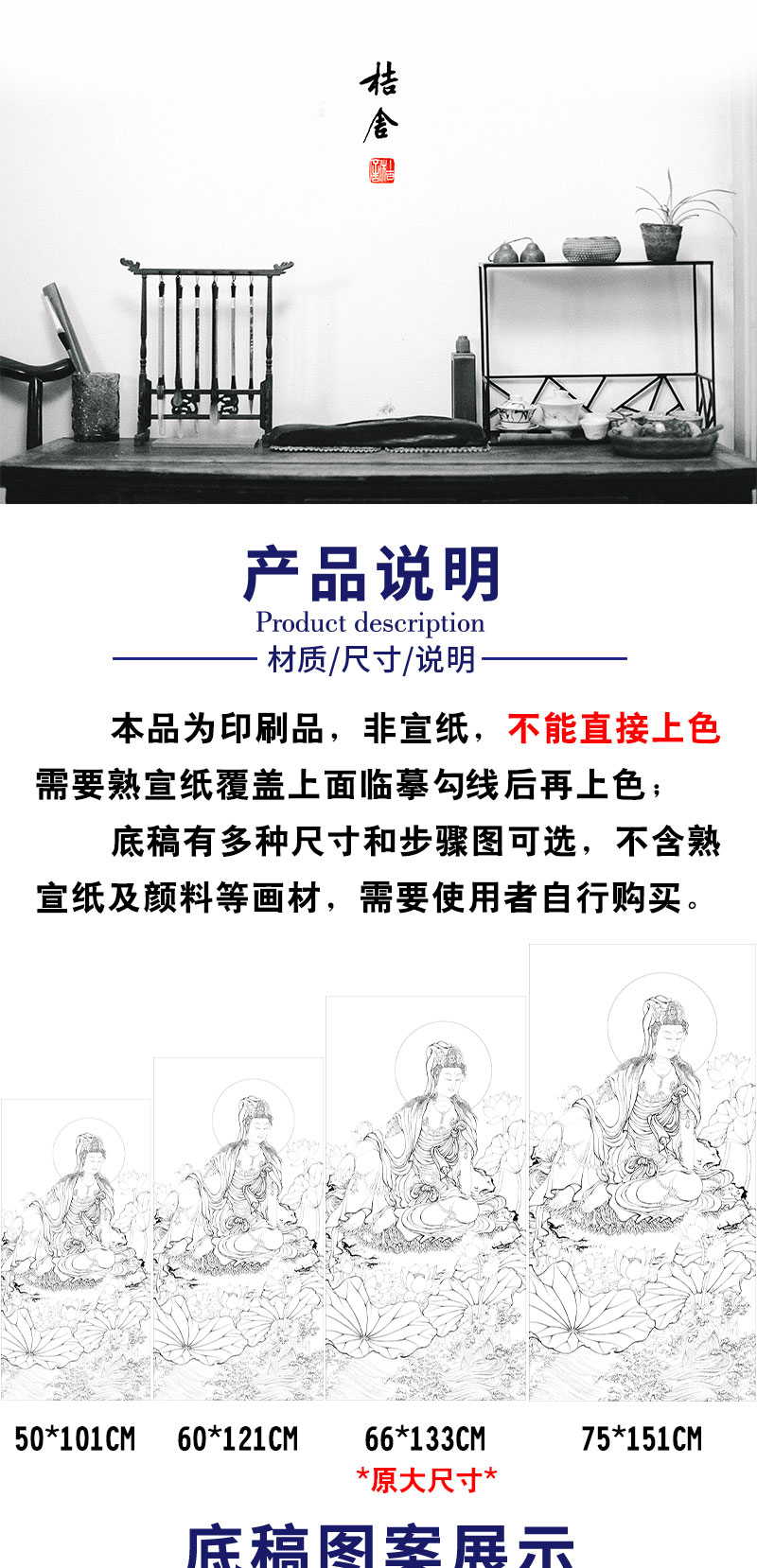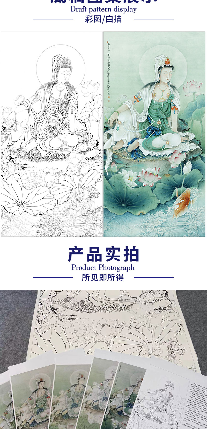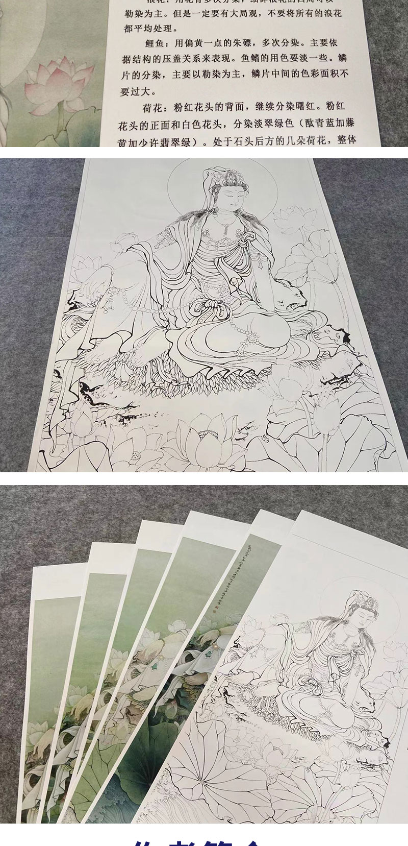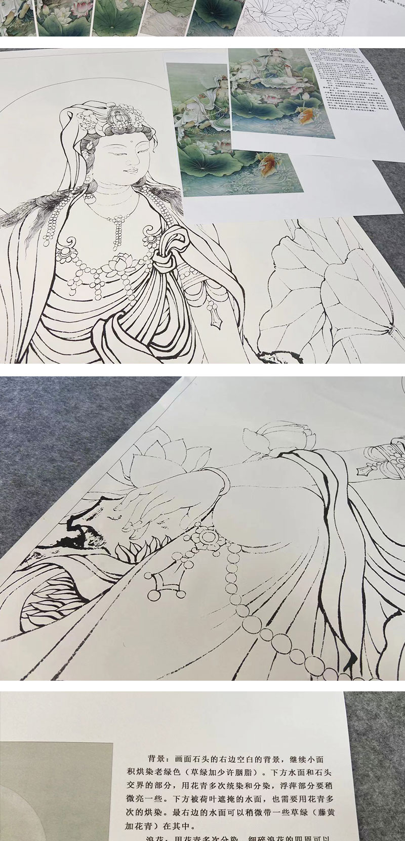 【有步骤、大彩图】李晓明工笔画白描稿《观音宝像》人物线稿KG07