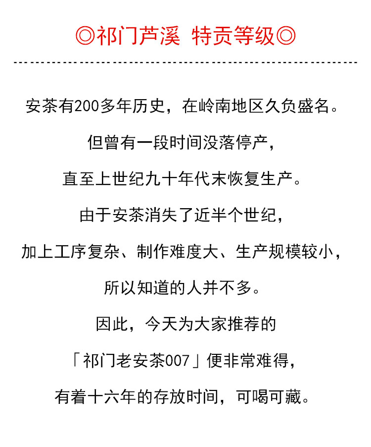 茶香记 祁门老安茶007 祁门芦溪 特贡等级 甜醇厚重 可泡可闷