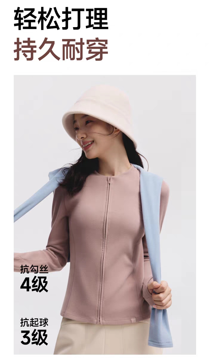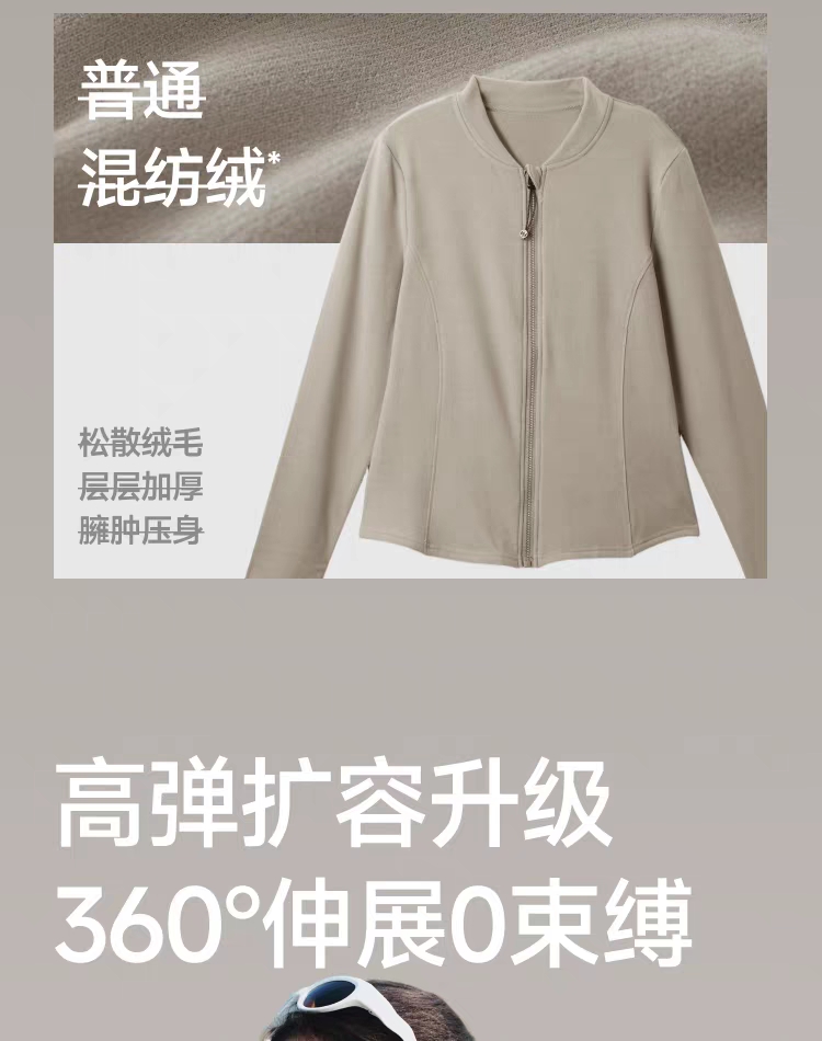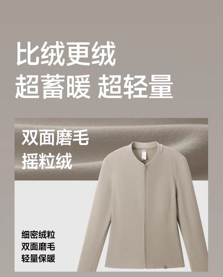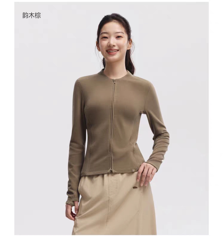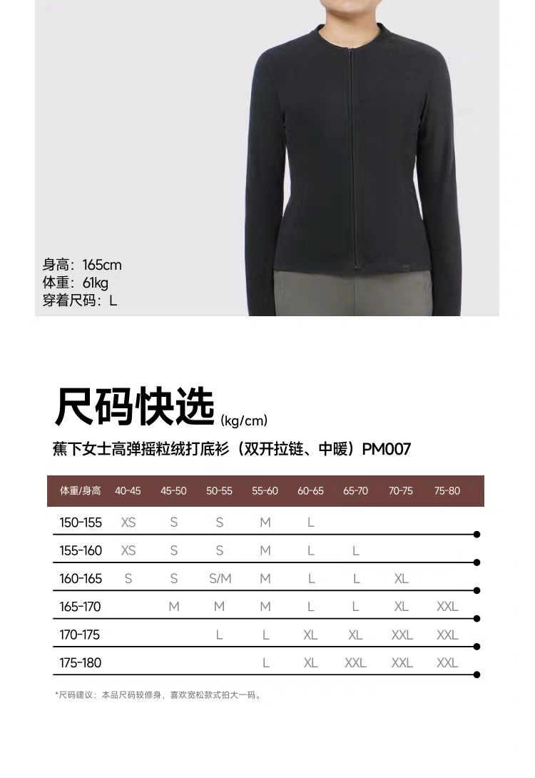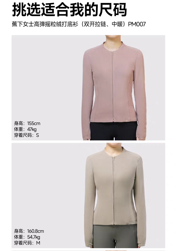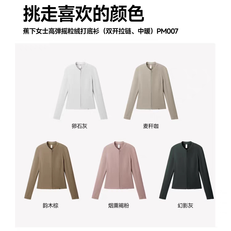 蕉下女士高弹摇粒绒打底衫双开拉链PM007秋保暖内搭上衣加绒开衫