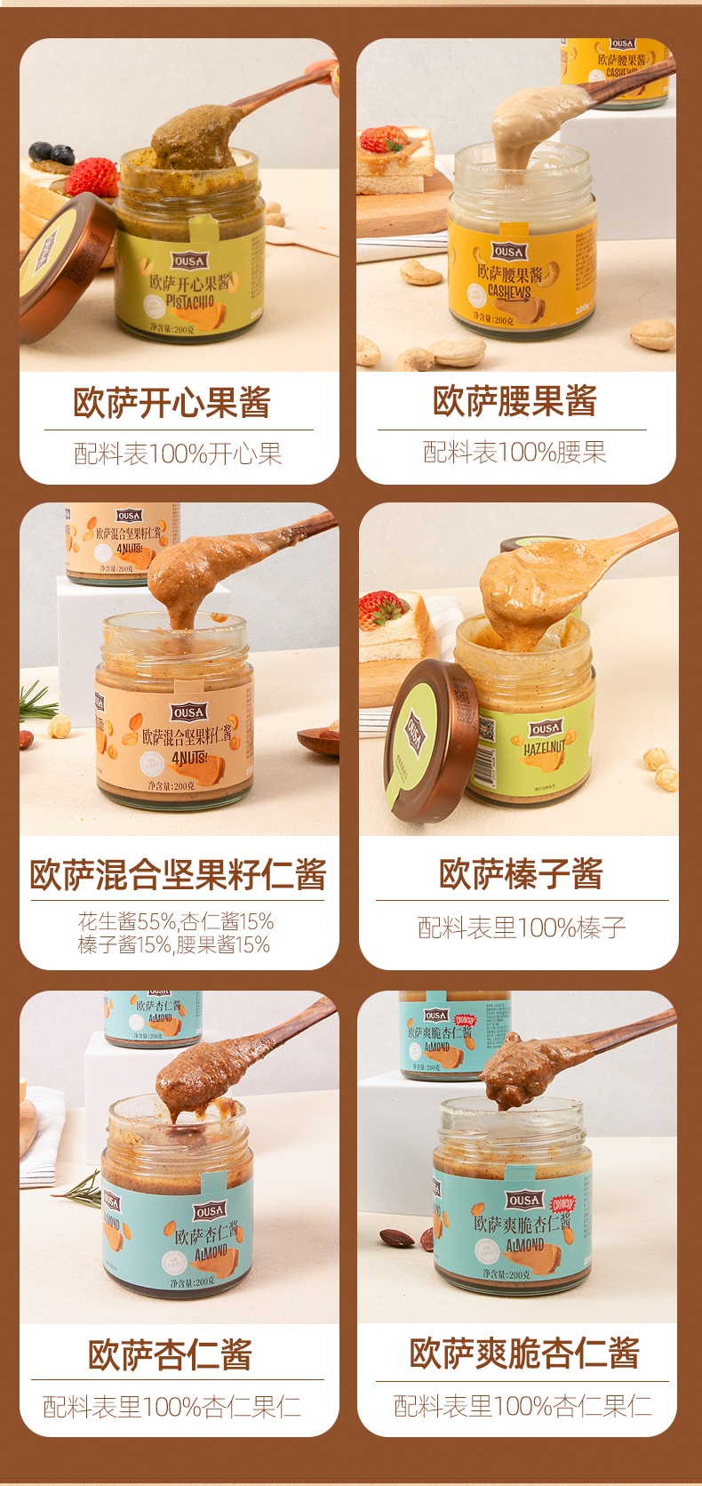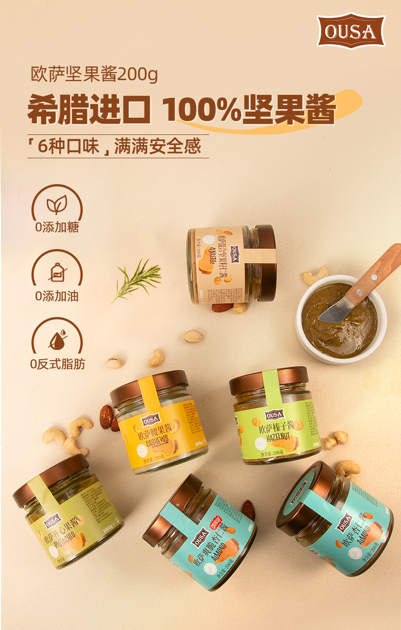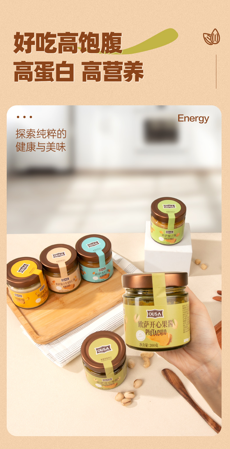 OUSA欧萨进口开心果酱榛子酱腰果酱杏仁酱混合坚果籽仁酱