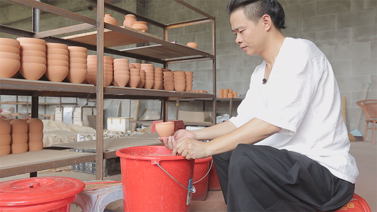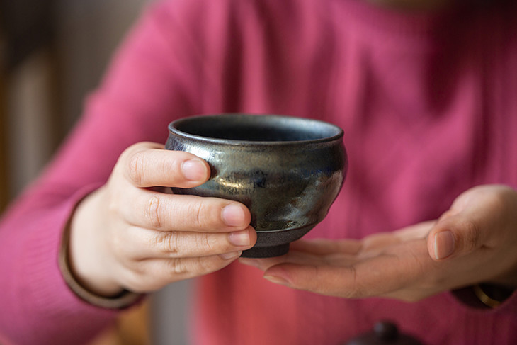 采用建阳铁胎原矿土,全手工拉坯成型,一气呵成。