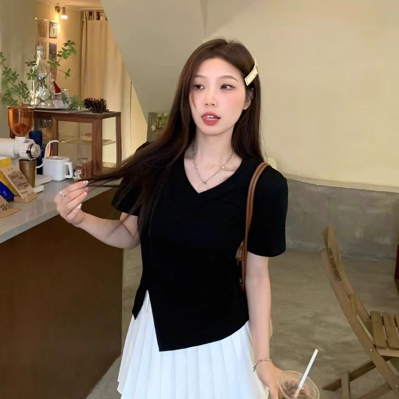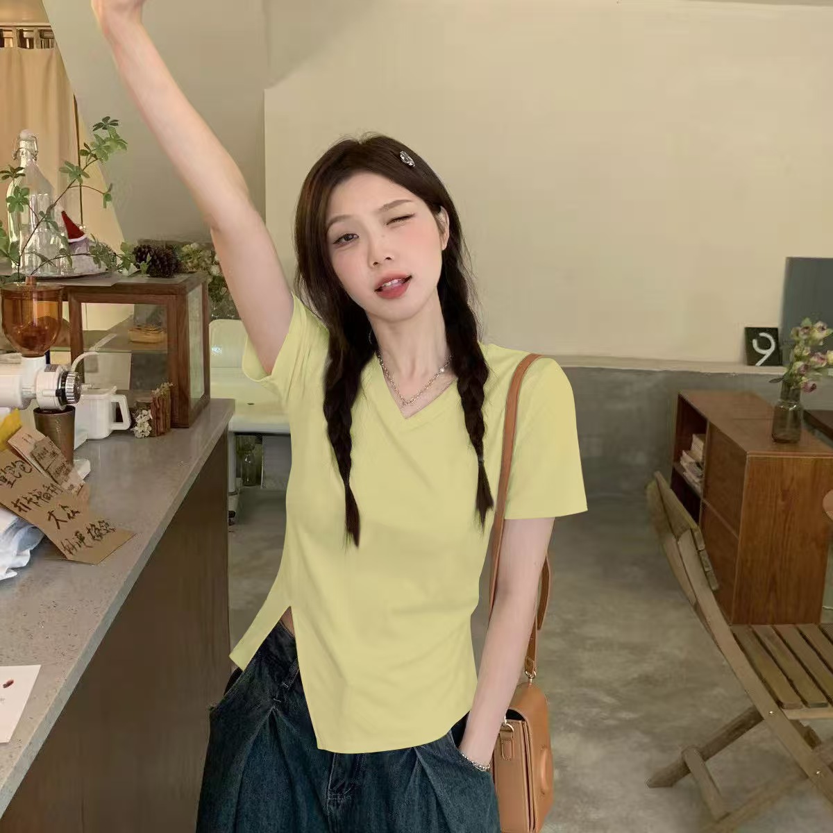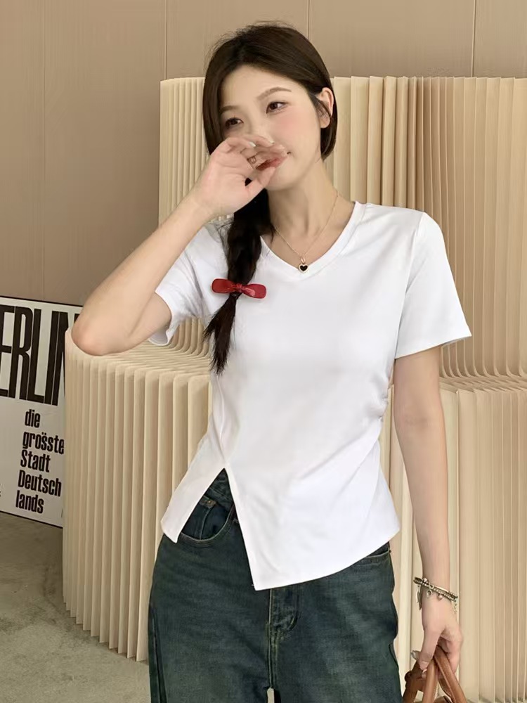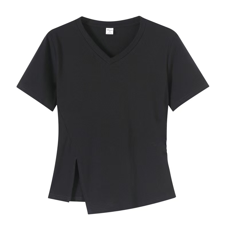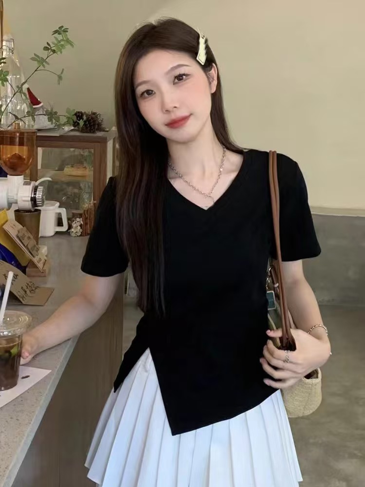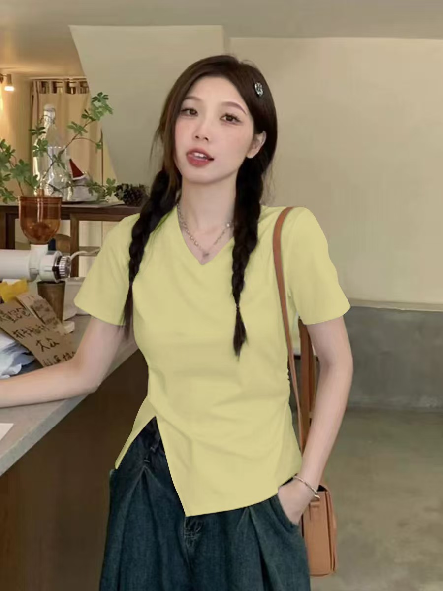 自营【特价T恤】王炸爆款~V领开叉修身款!螺纹棉韩系开叉百搭短袖T恤0 2399-喜出