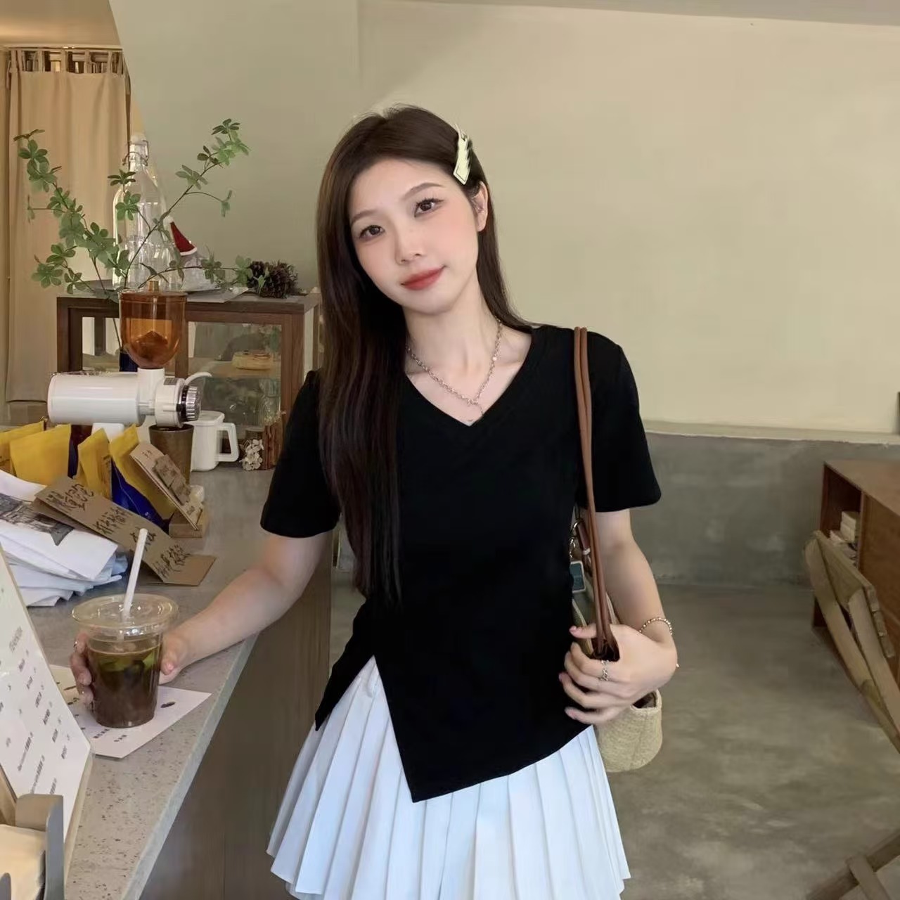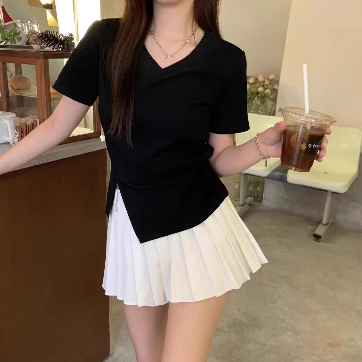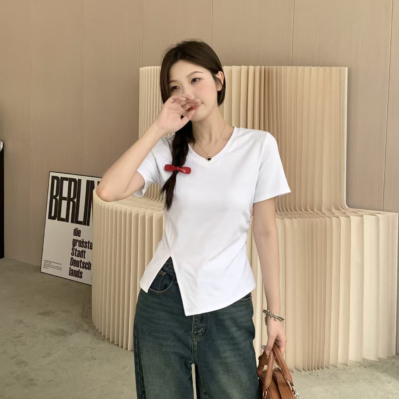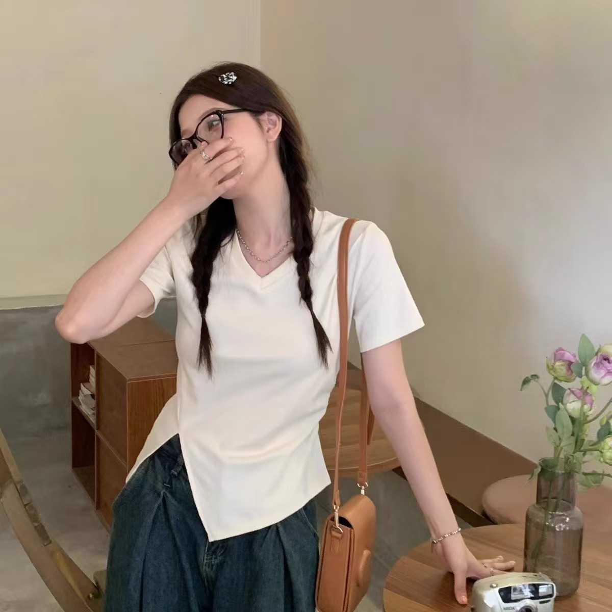 自营【特价T恤】王炸爆款~V领开叉修身款!螺纹棉韩系开叉百搭短袖T恤0 2399-喜出
