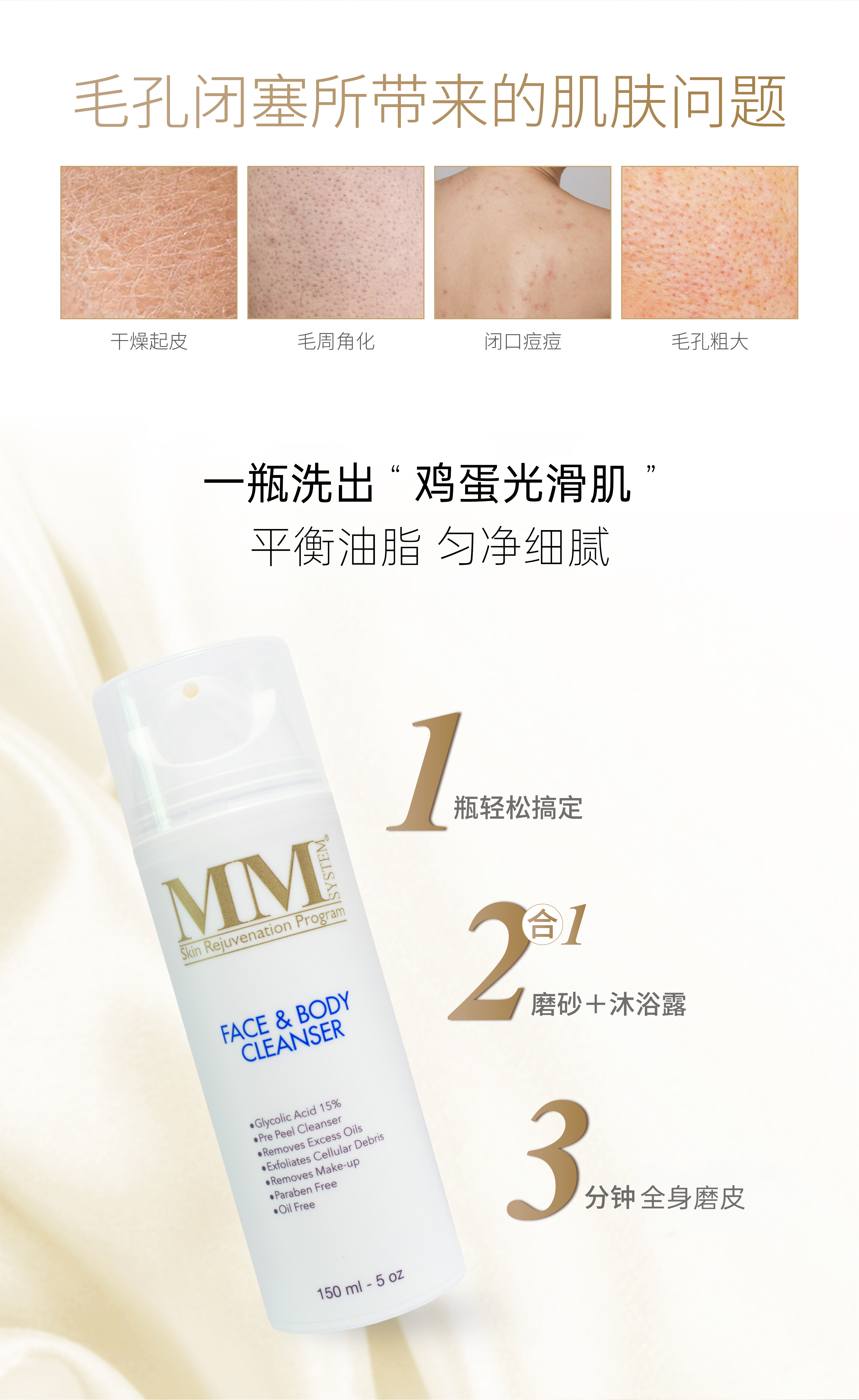 美国MENE MOY MM SYSTEM果酸焕肤沐浴露 150ml15%