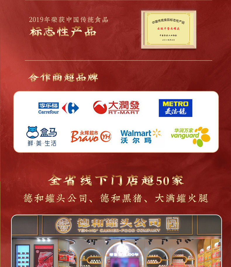 【2罐超值 低至36.9/罐】德和 黑猪云腿午餐肉340g/罐 含肉量>90% #午餐肉