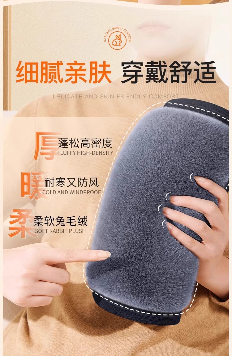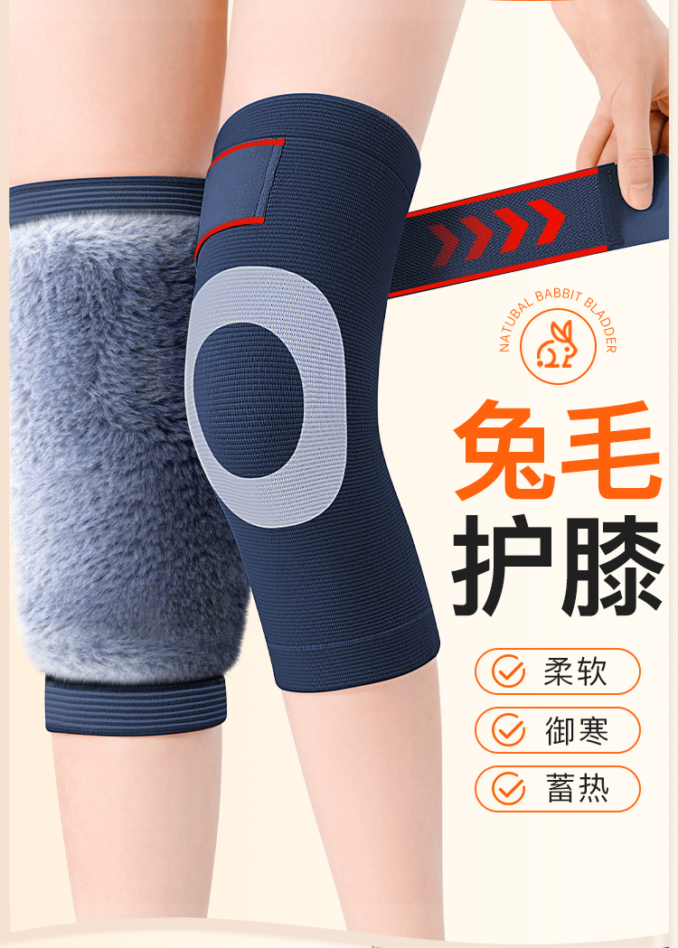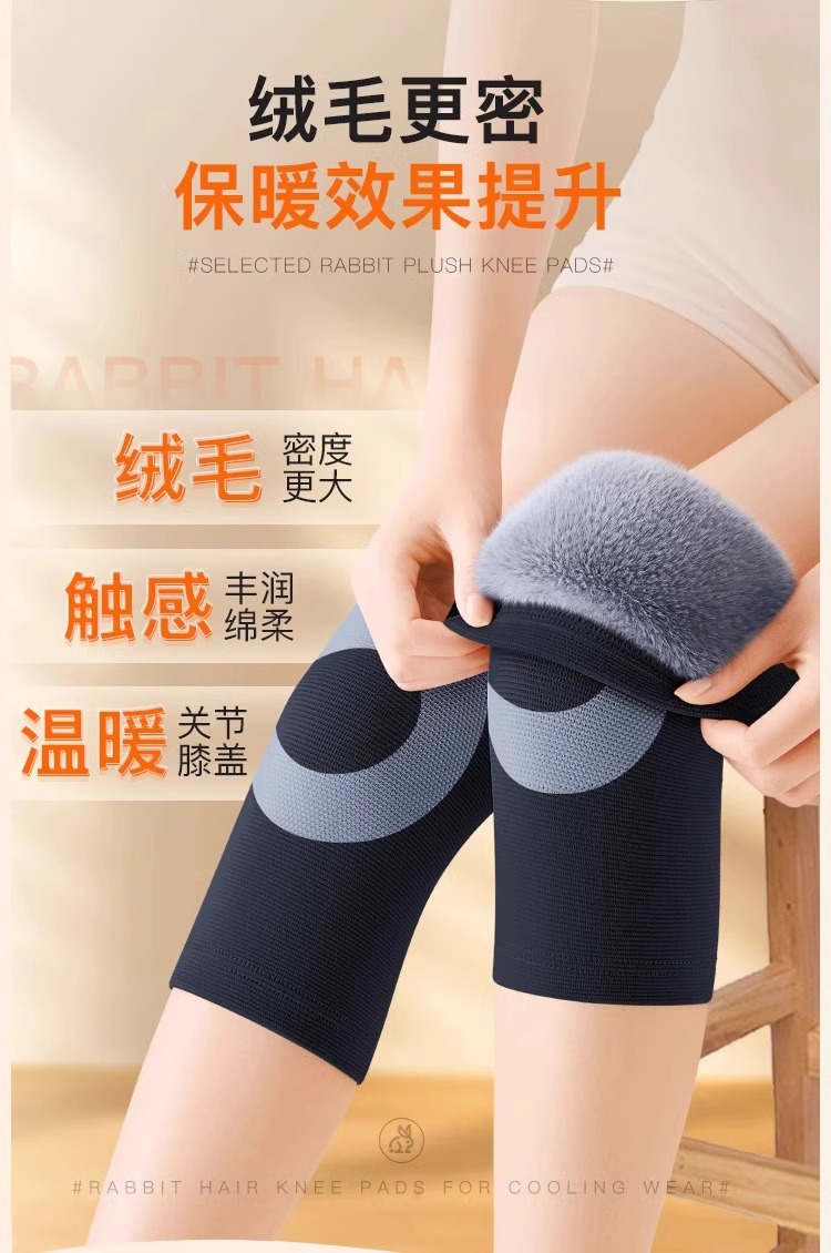 PANAPOPO羊羔绒护膝加厚按摩款|PANAPOPO膝部固定器 (兔毛绒护膝绑带V2长款)