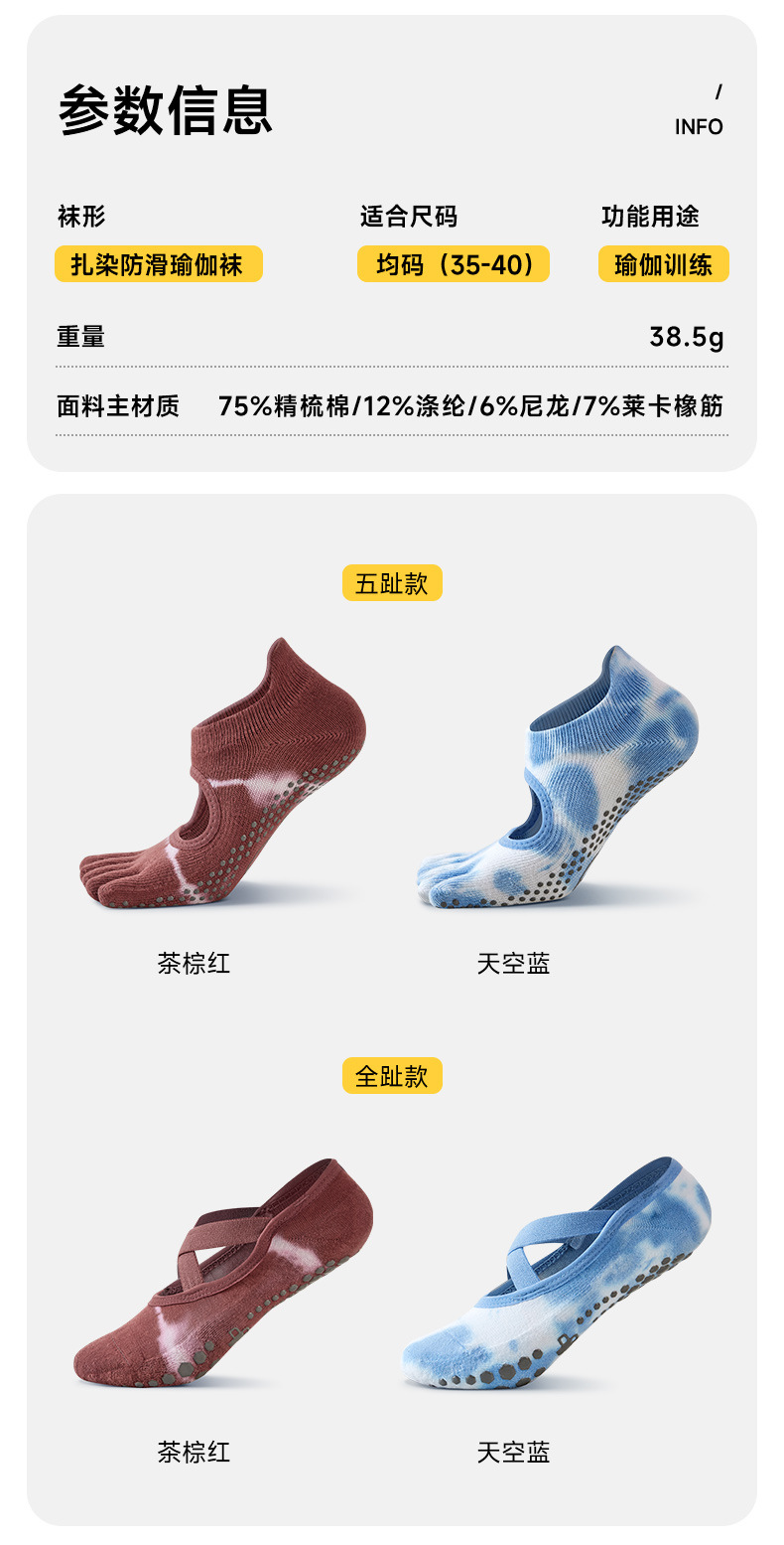 【59元任选2件】【小鱼加加】专业女款瑜伽五指袜防滑初学者分趾绑带舞蹈袜20230104